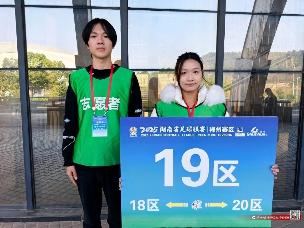 “你好,请问场馆附近有没有卖郴州队球衣的地方?”12月6日下午,“湘超”最后一轮郴州队主场对阵衡阳队的比赛即将打响,在郴州市体育中心19区看台入口处,一位匆匆赶到的球迷向志愿者徐能文询问道。这位来自郴州技师学院旅游管理系的大四女生微笑着为他指明了方向。
