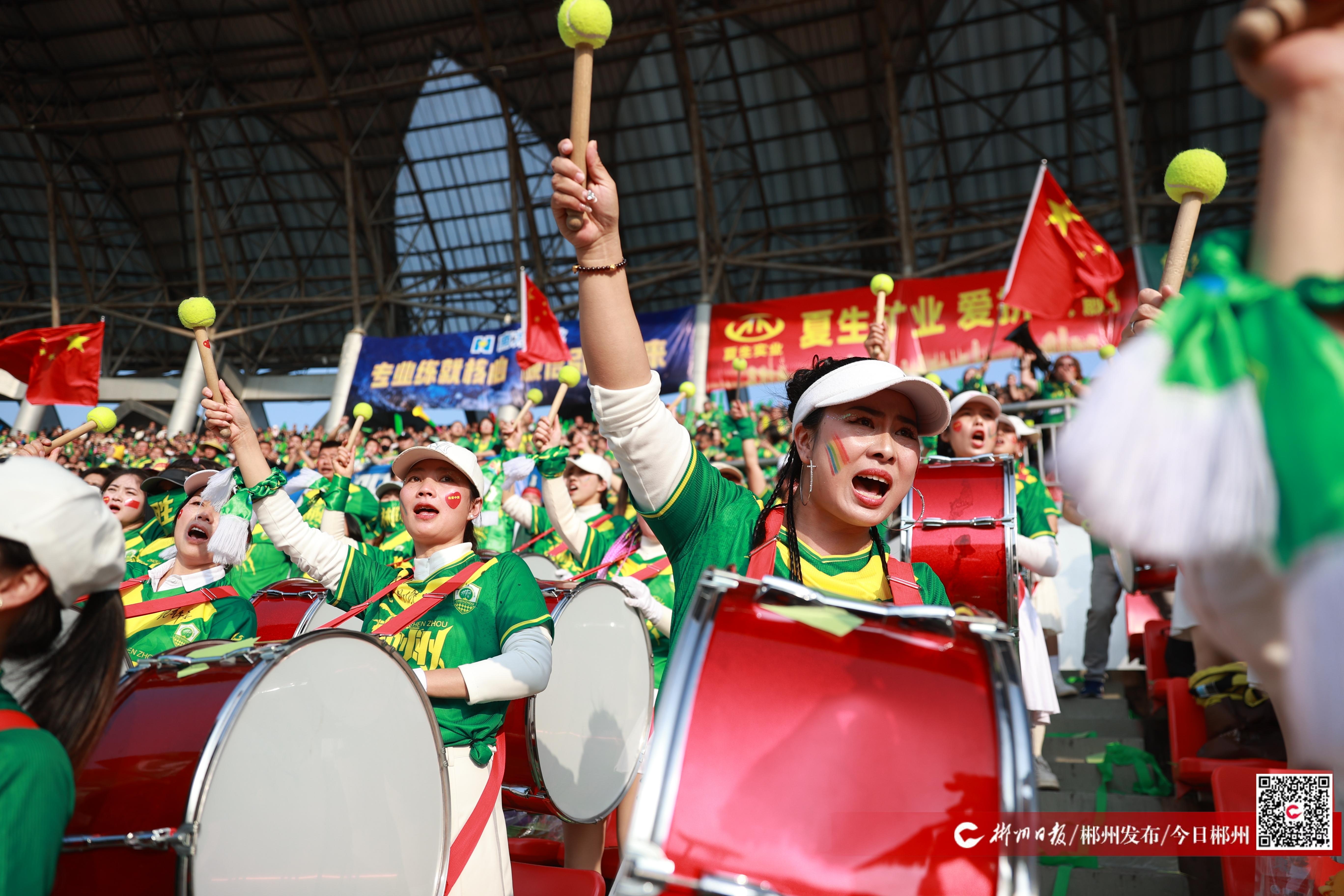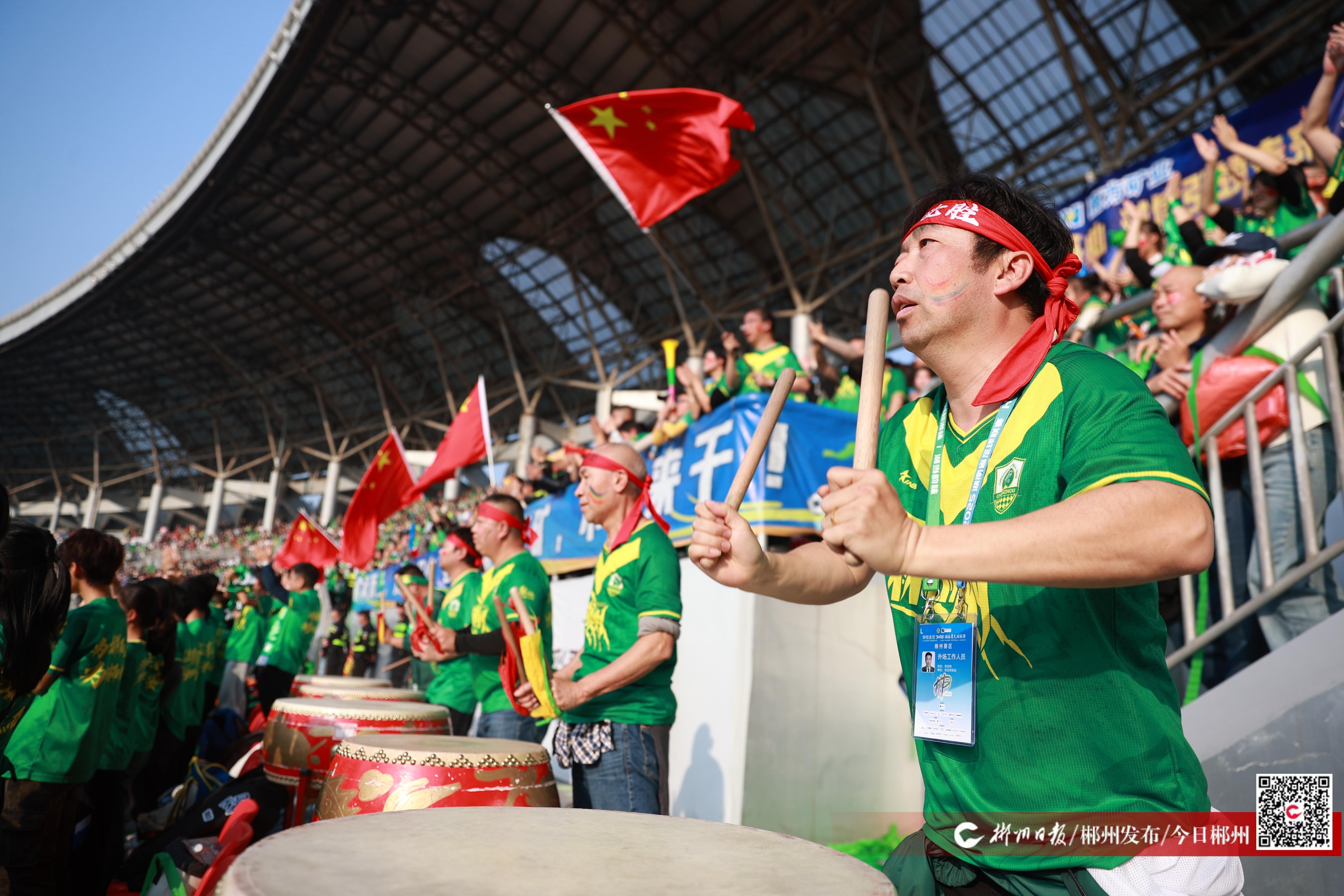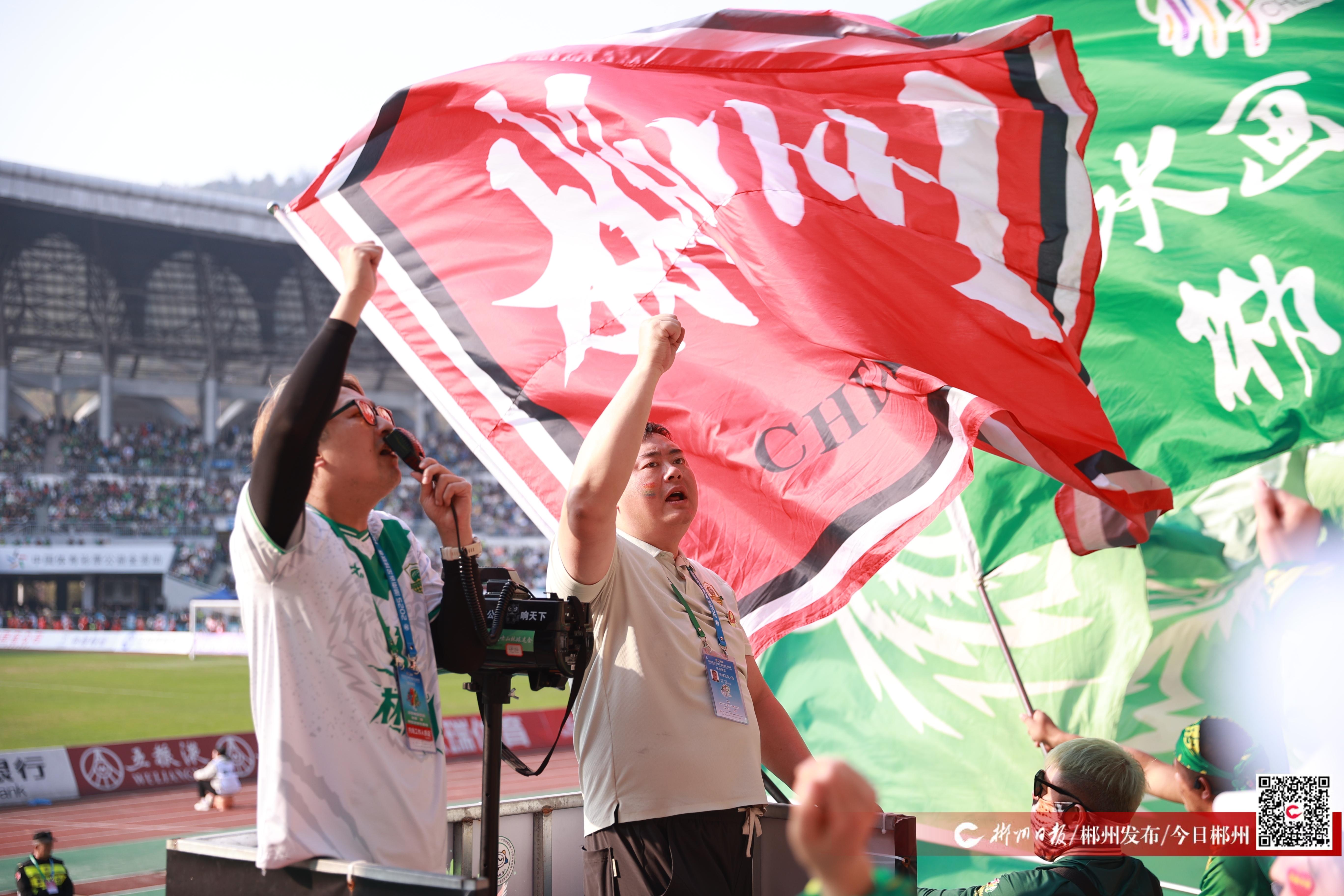 15时整,主裁哨响,“战旗扬、战鼓响,林邑之城亮锋芒!”“我们站在你的身后,永远伴你左右。为了梦想,为了胜利,一起战斗吧郴州!”的激昂战歌瞬间响彻云霄。当郴州球员如猎豹般突破防线,看台旗帜齐刷刷放平,如利剑直指赛场。“杀!”在领喊员张旭一声震天怒吼下,助威声浪化作滚雷,撼动人心。