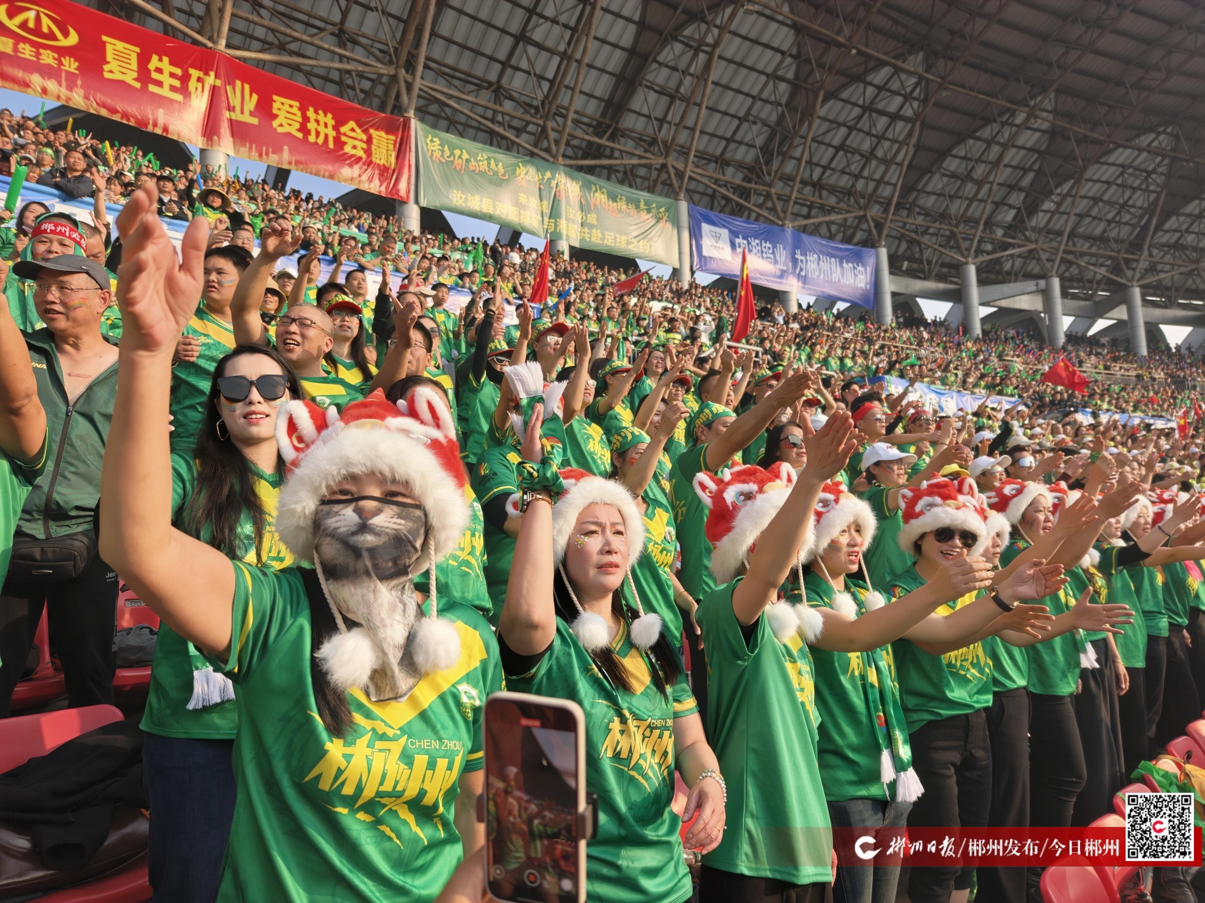 夕阳西下,热血与温情仍在空气中弥漫。“这场胜利是新起点,绿茵场的故事还在继续。”郴州虎啸山林球迷会会长罗锋动情地说,“我们这充满生机的绿、滚烫的爱,将继续与郴州队并肩战斗,为球员撑起最坚实的后盾!”
