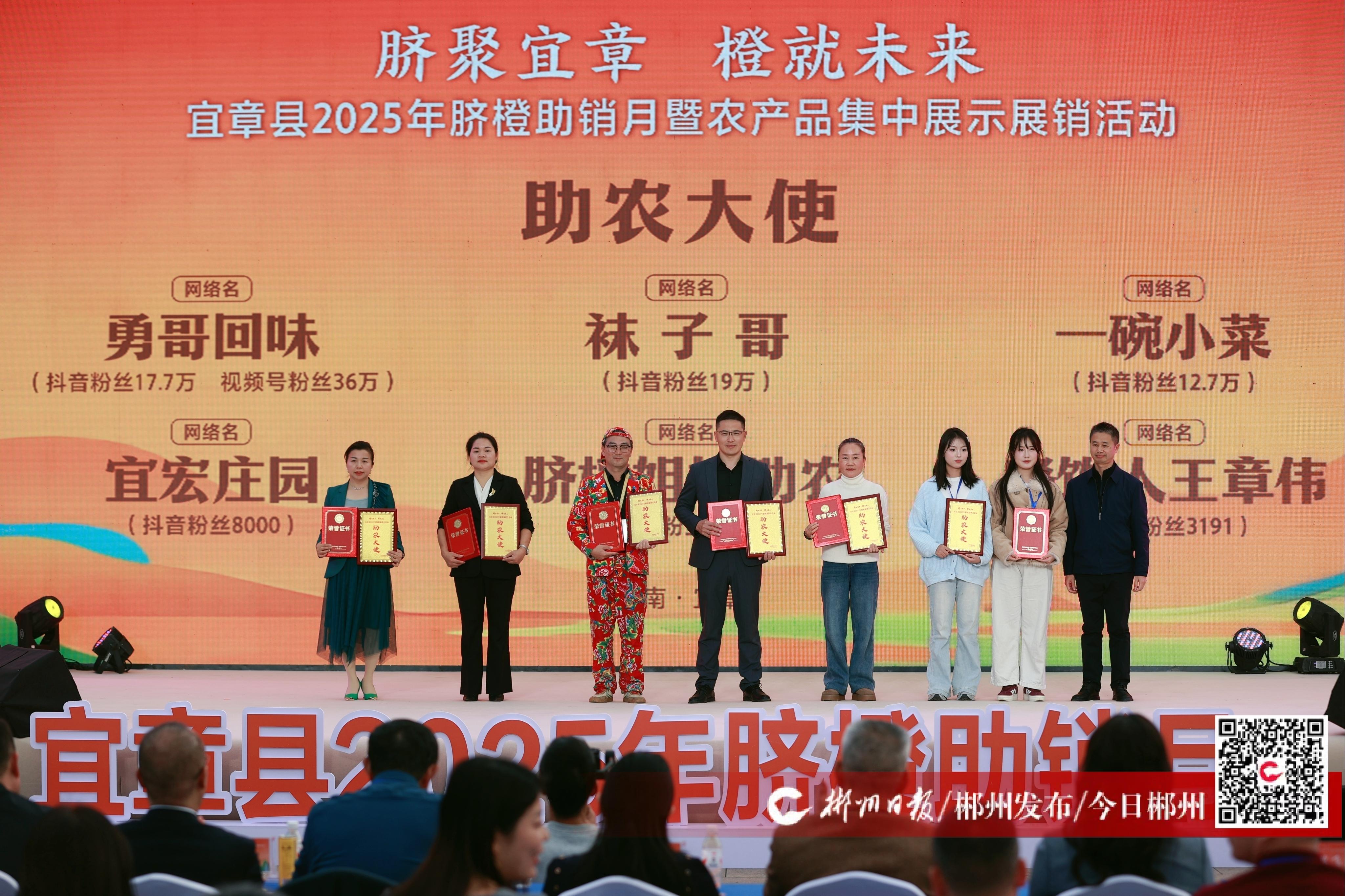 活动现场气氛热烈,吃脐橙比赛吸引了众多市民踊跃参与,丰富多彩的文艺节目展示了宜章脐橙的好“丰”景,传递出果农丰收的喜悦。同时,主办方为“农文旅十佳精品果园”“优质脐橙十佳供应商”“助农大使”授牌,进一步提升了品牌影响力。宜章“助农大使”黄强勇表示,将利用互联网优势,搭建农户与电商平台之间的桥梁,并引进更多达人推广宜章脐橙。