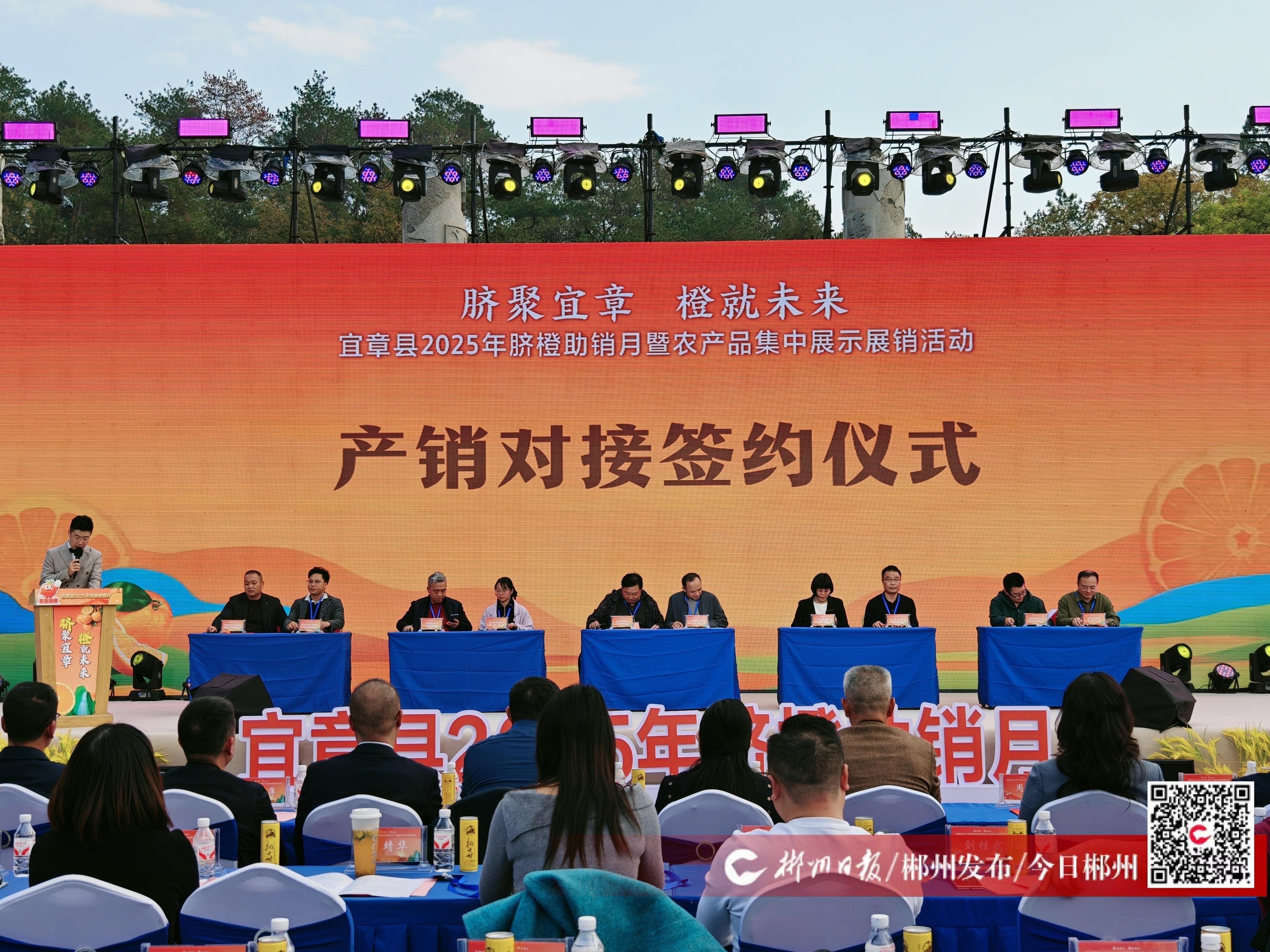 启动仪式上,中国柑橘协会名誉理事长、湖南农业大学教授邓子牛从生长环境、产业基础、未来发展等维度,全方位推介宜章脐橙。宜章脐橙外观红润、皮薄多汁,易储耐放、营养丰富,颜值、风味与营养俱佳,吸引了湖南、广东、上海等地的经销商齐聚宜章。现场举行了产销对接签约仪式,为脐橙销售搭建起稳固的桥梁。