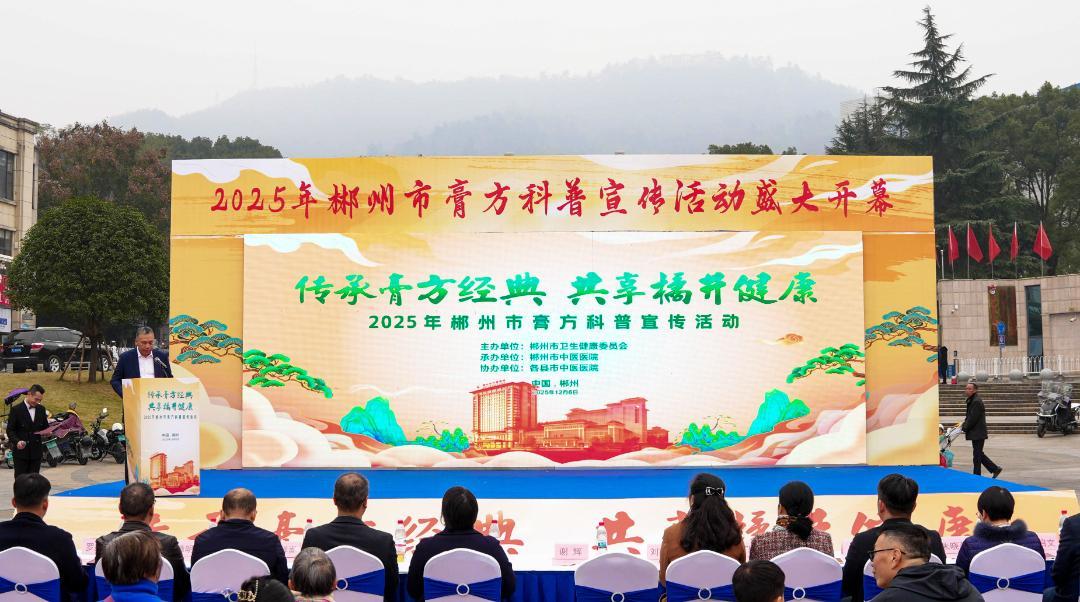 12月6日,由郴州市卫生健康委主办,郴州市中医医院承办的2025年郴州市膏方科普宣传活动在苏仙岭福地广场盛大启幕。这场以“传承膏方经典,共享橘井健康”为主题的盛会,融合文化展演、专家义诊、惠民服务三个核心部分,让中医药智慧走出典籍、走进生活,为湘南大地注入健康新动能。