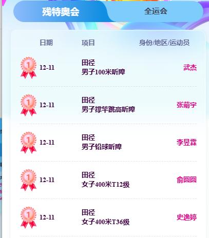 这是她在本届赛事中收获的第三枚金牌。12月10日,史逸婷在女子200米T36级决赛中以28秒75的出色表现夺得冠军。12月9日,她在女子100米T36级比赛中摘得首金。史逸婷以出色的竞技状态和稳定的发挥,续写着自己的赛场传奇。
