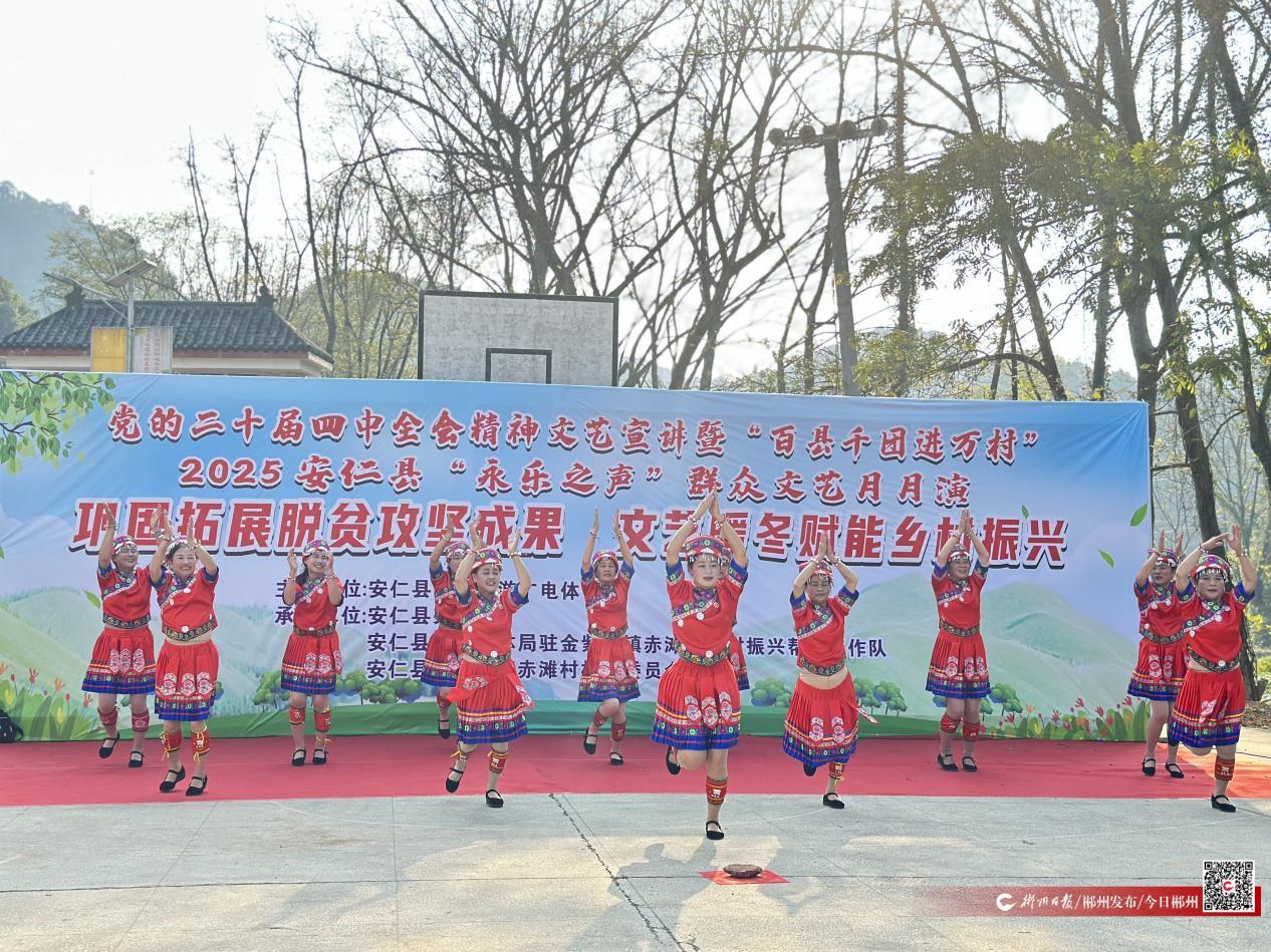 12月11日,党的二十届四中全会精神文艺宣讲暨“百县千团进万村”2025湖南省安仁县“永乐之声”群众文艺月展演活动走进赤滩村,以群众喜闻乐见的形式,将政策理论送到田间地头,为乡村振兴注入文化暖流。