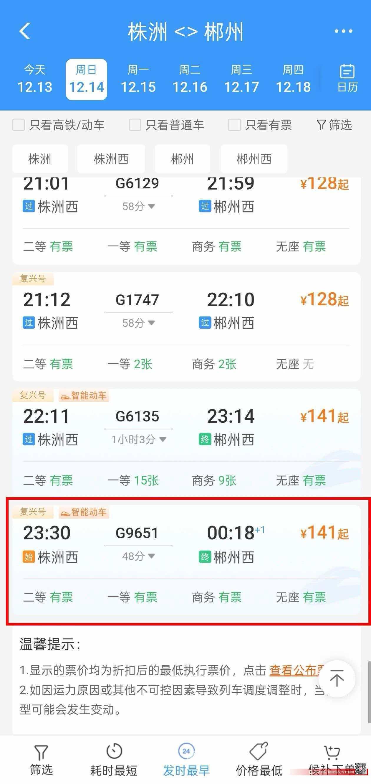 此次加开的高铁为G9651次列车,将于12月14日23时30分从株洲西站准时发车,次日0时18分即可抵达郴州西。