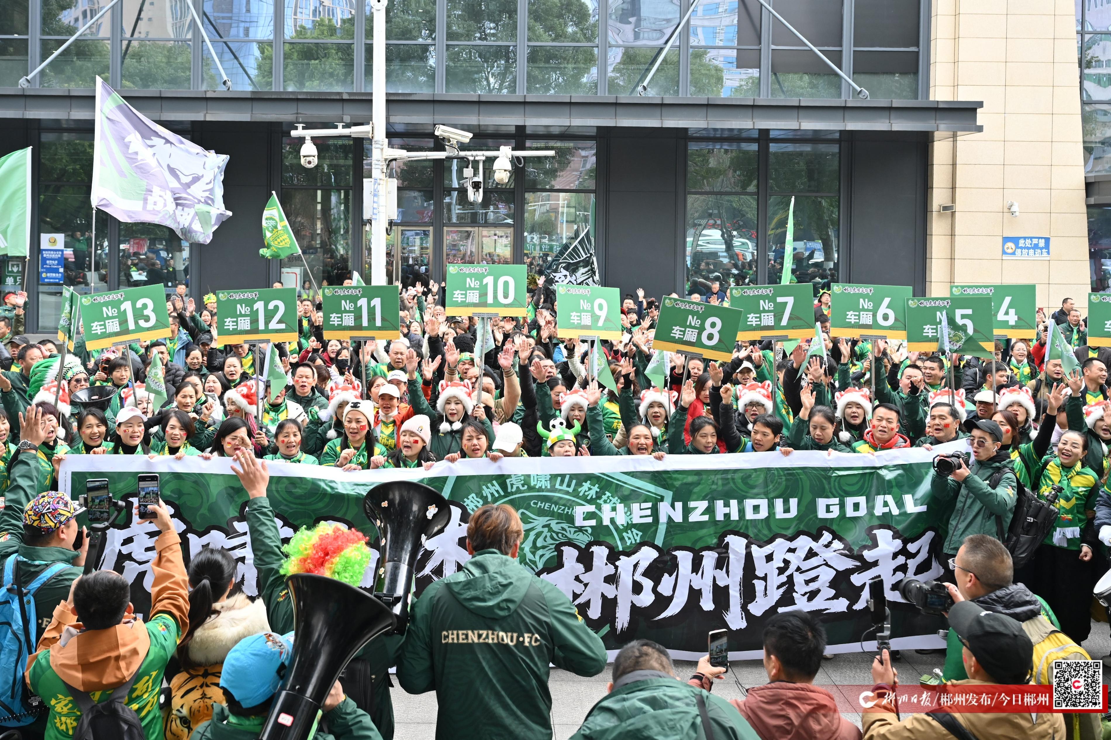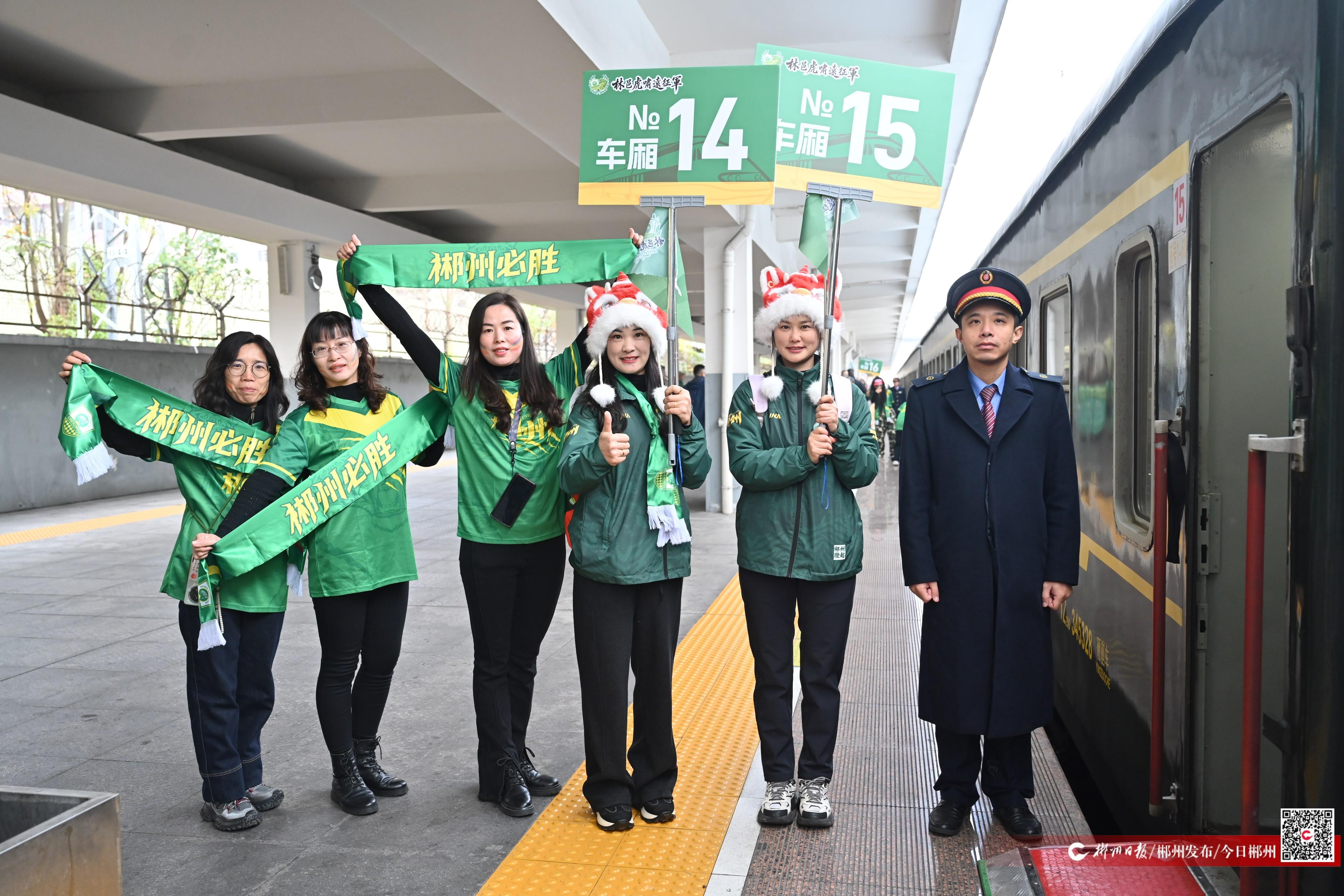 12月14日上午,郴州火车站广场集结起一片身着绿色助威衫的人群。郴州虎啸山林球迷会组织的约2500名球迷在此集合,准备乘坐铁路部门特别安排的K6502次专列,前往株洲为当晚“湘超”联赛八进四淘汰赛的郴州队客场助威。