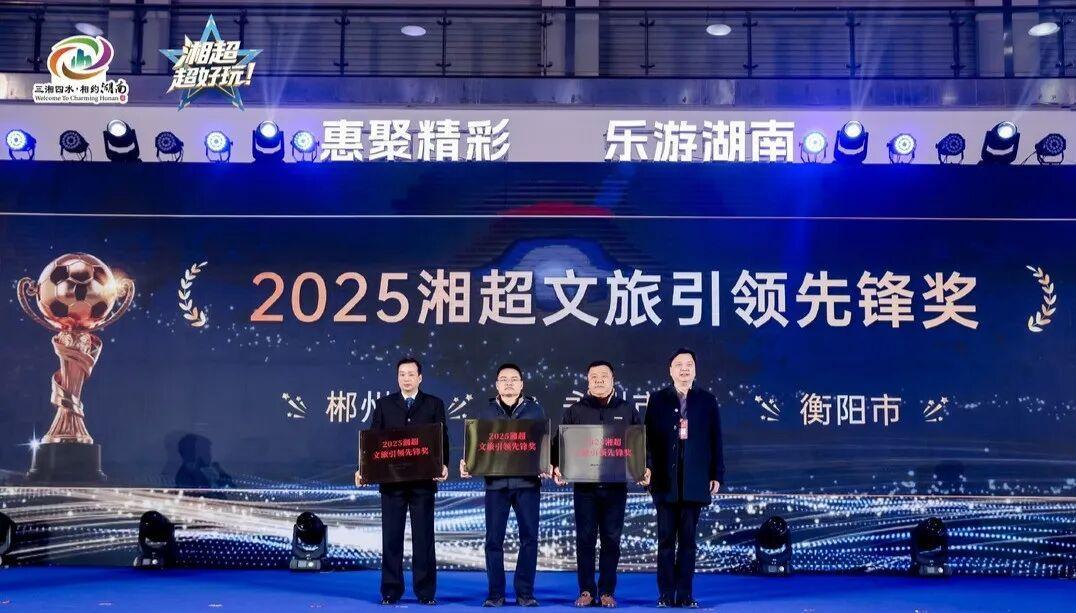 12月14日,“湘超,超好玩”2025“湘超”文旅促消费活动颁奖盛典上,2025湘超文旅引领先锋奖颁奖,郴州获奖。