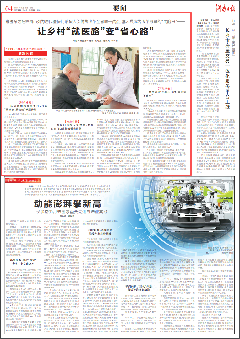 省医保局2023年3月批复郴州市作为全省唯一试点城市,开展居民医保门诊按人头付费改革。作为这项改革最早的“试验田”,“十四五”期间,嘉禾县打出精准有效的组合拳,以基本医保筑牢“压舱石”,实现“乡有窗、村有点”,打通医保便民惠民“最后一公里”,让乡村“就医路”变“省心路”。