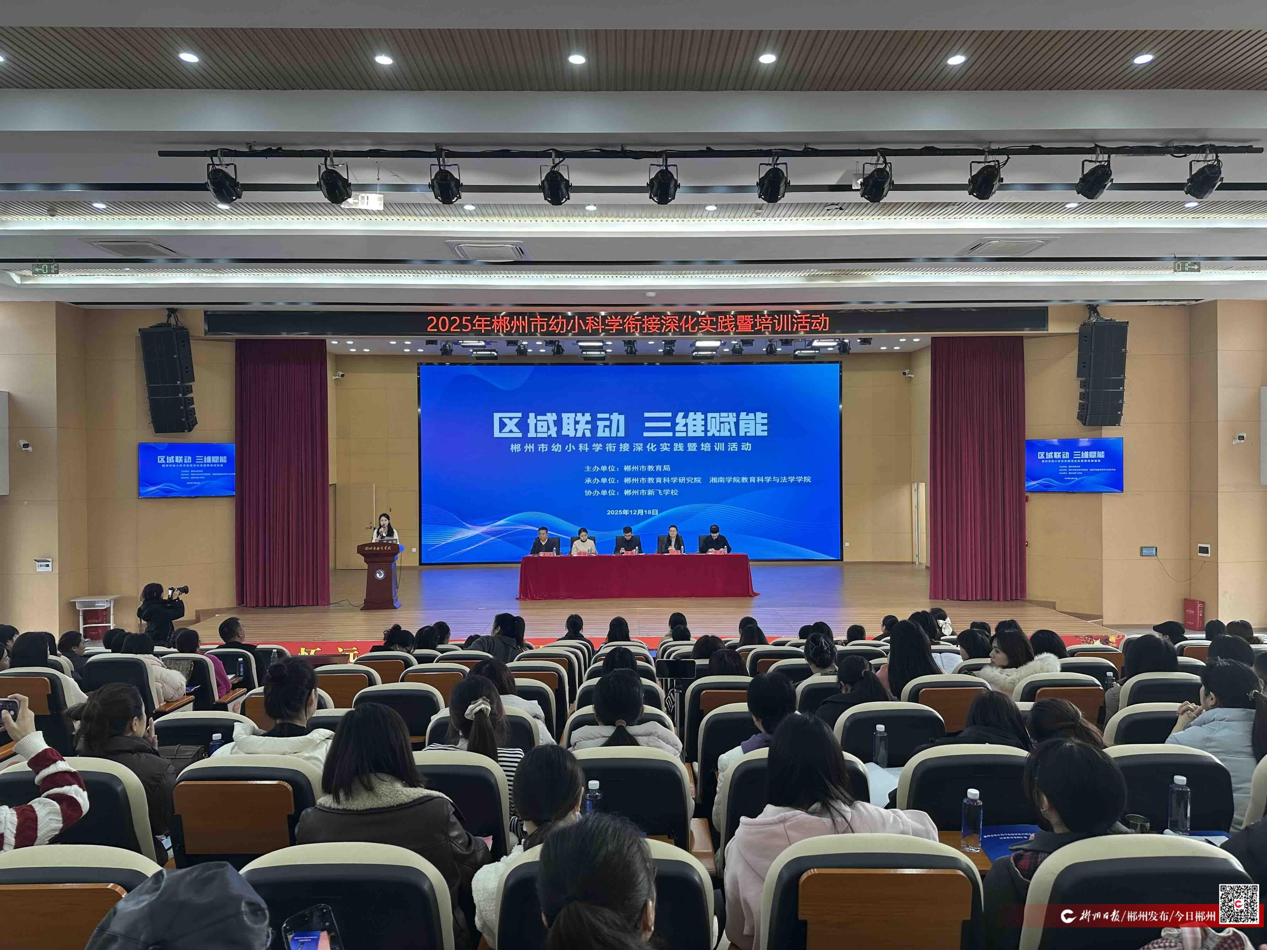 12月18日,郴州市幼小科学衔接深化实践暨培训活动在郴州市新飞学校举行。来自全市幼儿园、小学的教育管理者、教研员及骨干教师400余人齐聚一堂,围绕幼⼩衔接的实践与探索展开热烈研讨。