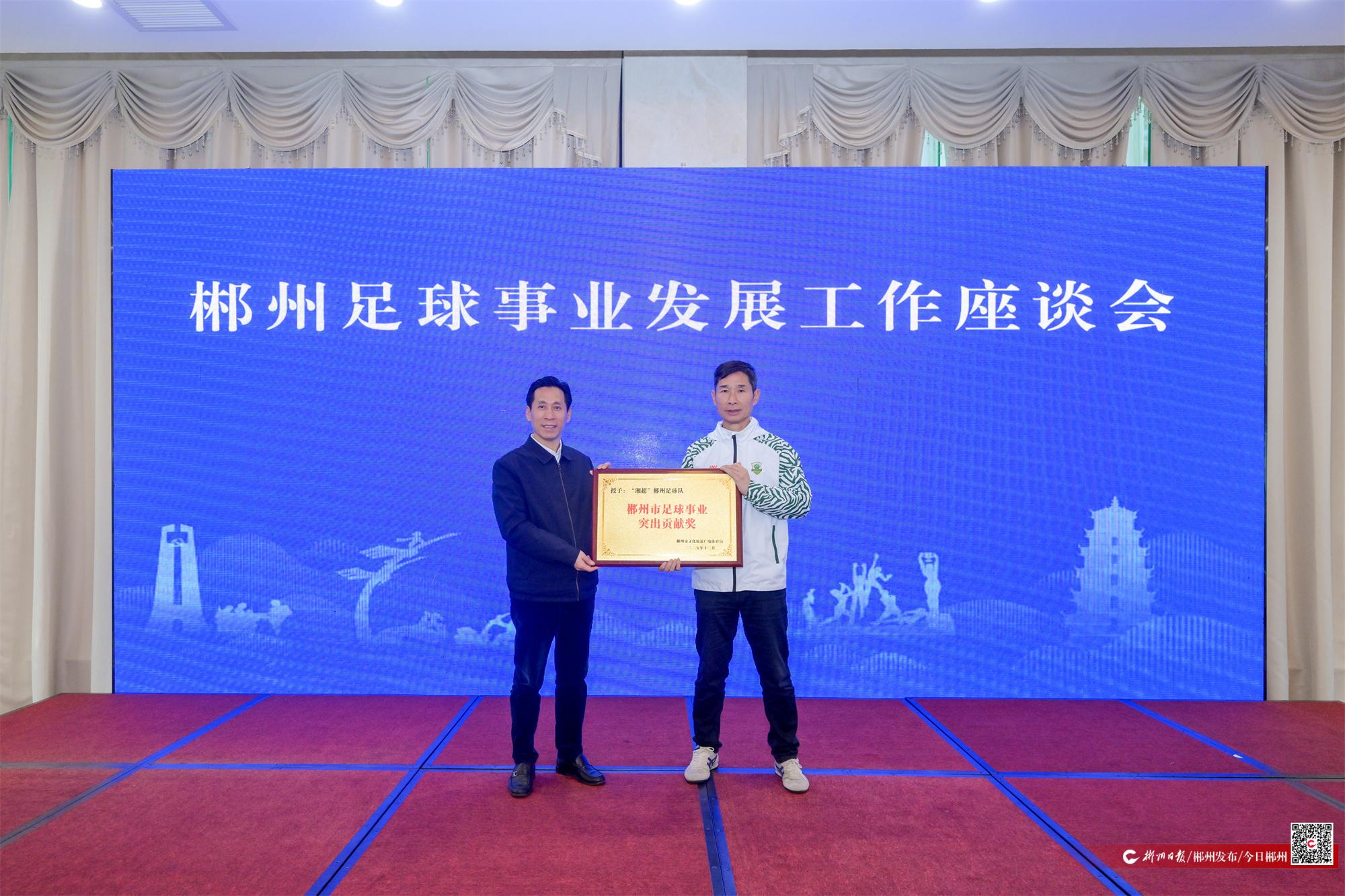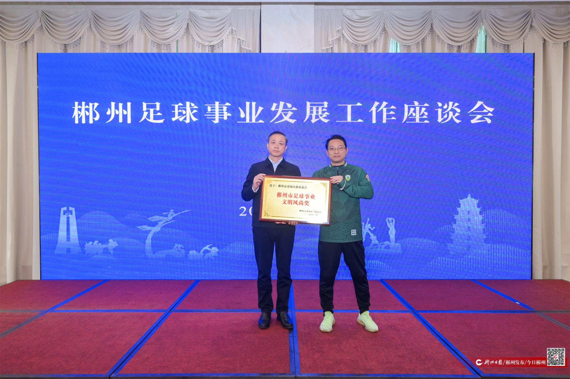 座谈会上,吴巨培为“湘超”郴州队球员蒋政、夏宇、鲍锦荣、杨克凡颁发“郴州市荣誉市民”证书。授予“湘超”郴州足球队“郴州市足球事业突出贡献奖”,授予虎啸山林球迷会“郴州市足球事业文明风尚奖”,授予康巴赫、舜华鸭业、夏生实业“郴州市足球事业特别奉献奖”。