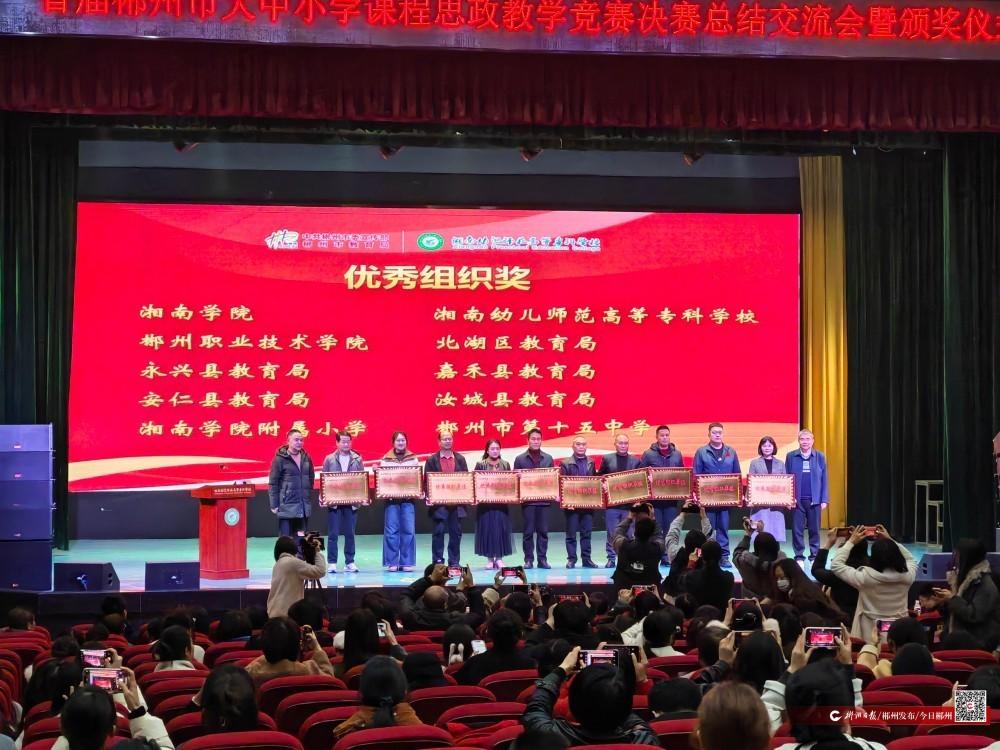 12月21日,首届郴州市大中小学课程思政教学竞赛总结交流会暨颁奖仪式在湘南幼儿师范高等专科学校举行。