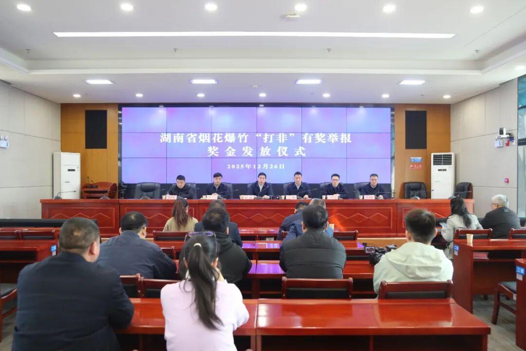 12月19日,根据群众举报线索,在省应急管理厅的统一组织指挥下,省、市、县、乡联动,成功捣毁位于郴州市宜章县黄沙镇沙坪村一处非法生产爆竹黑窝点,查获成品2360箱、半成品509饼,有效防范化解了因非法生产可能引发的重大事故风险。依据《湖南省安全生产领域有奖举报实施办法》,省安委办、省应急管理厅决定对本案线索举报人发放举报奖金。