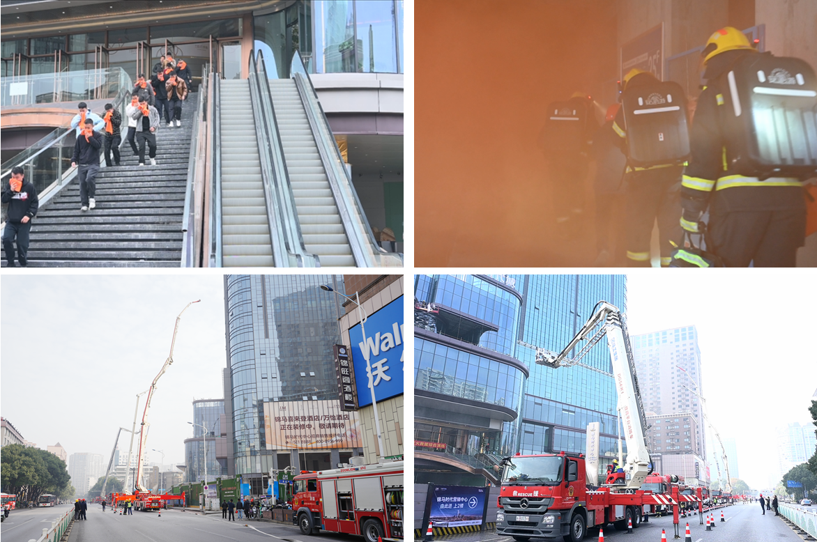 本次演练以“锦马时代中心”电缆井施工起火并引燃周边可燃物为模拟场景,围绕火灾事故处置全流程展开,在现场指挥部统一调度下,消防救援队伍与各参演单位紧密协作、高效联动。公安交警第一时间实施演练区域交通管制和现场管控,精准收集分析被困人员信息;城管协调洒水车全力保障现场供水;市卫生健康委组建医疗救援组,随时待命救治转运受伤人员。消防救援队伍灵活运用多点进攻、逐段消灭、内外合击等战术,先后完成机巢无人机先期侦查、被困人员核实、内攻搜救转运、内部排烟控火、外部控火等实战科目,全面展现了专业的救援素养和过硬的实战能力。