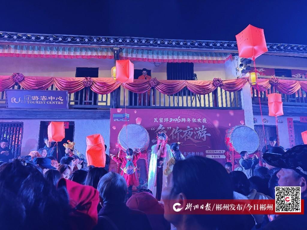 2025年12月31日,跨年夜当晚,苏仙区瓦窑坪历史文化古街灯火璀璨、人声鼎沸,2026“鱼”你夜游主题跨年狂欢夜活动在此举行。烟火气与文化韵味交融共生,为八方游客呈现了一场集视觉震撼、特色美食与古街漫游于一体的跨年盛典,千余名市民游客齐聚于此辞旧迎新。