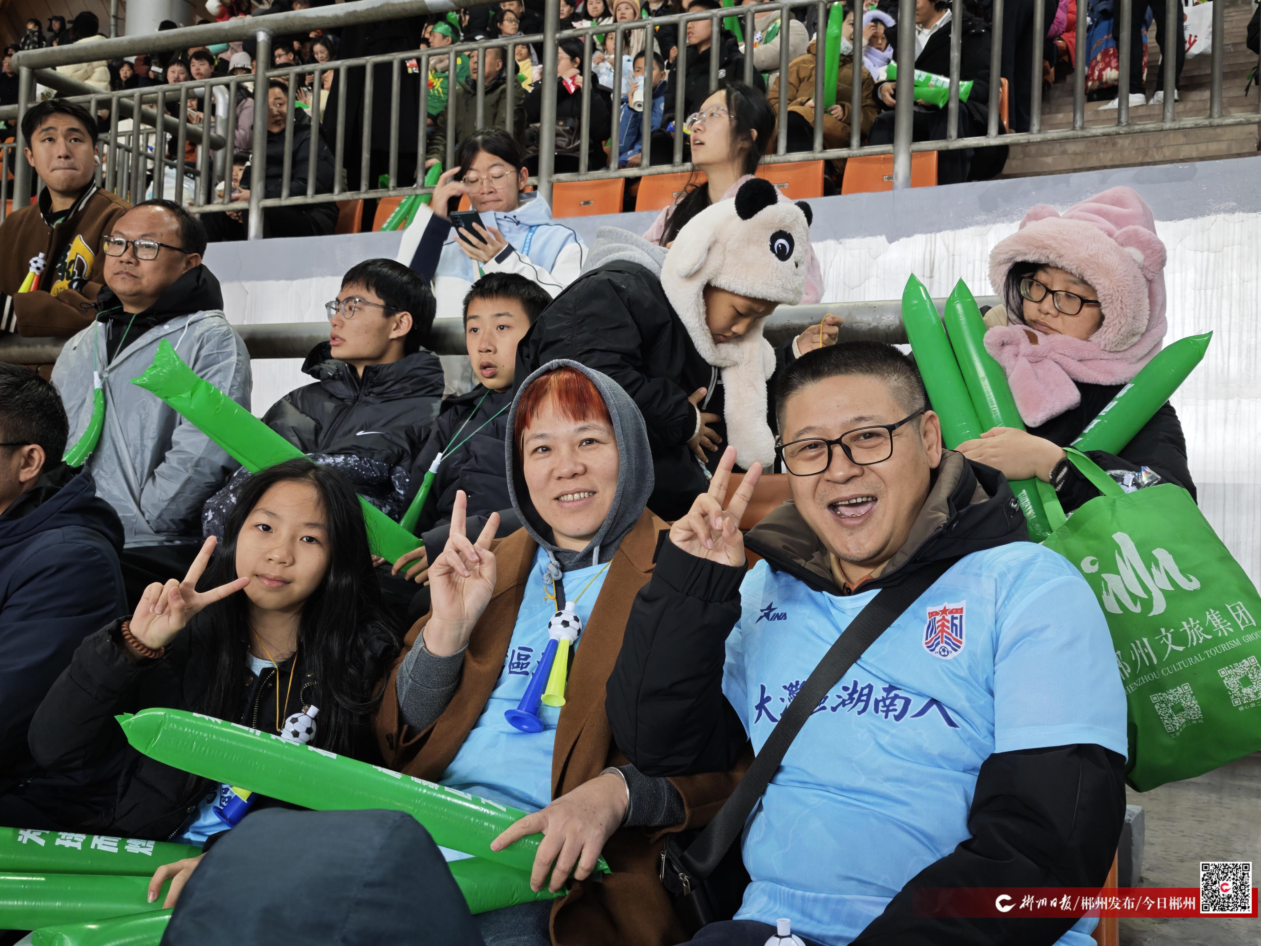 从深圳远道而来的黄先生一家目光始终追随着场上奔跑的黄色身影。“我们是球员黄俊雄的家人,这次特意跟着助威团坐了六个多小时车赶来为他加油。”黄先生介绍,他们一家祖籍湖南湘潭,此次回到湖南倍感亲切。他表示,儿子黄俊雄自幼热爱足球,六岁开始接受系统训练,家人一直全力支持他的足球梦想。“只要条件允许,我们都会尽量到场陪伴。之前他在长沙比赛,我们也都去现场支持。”