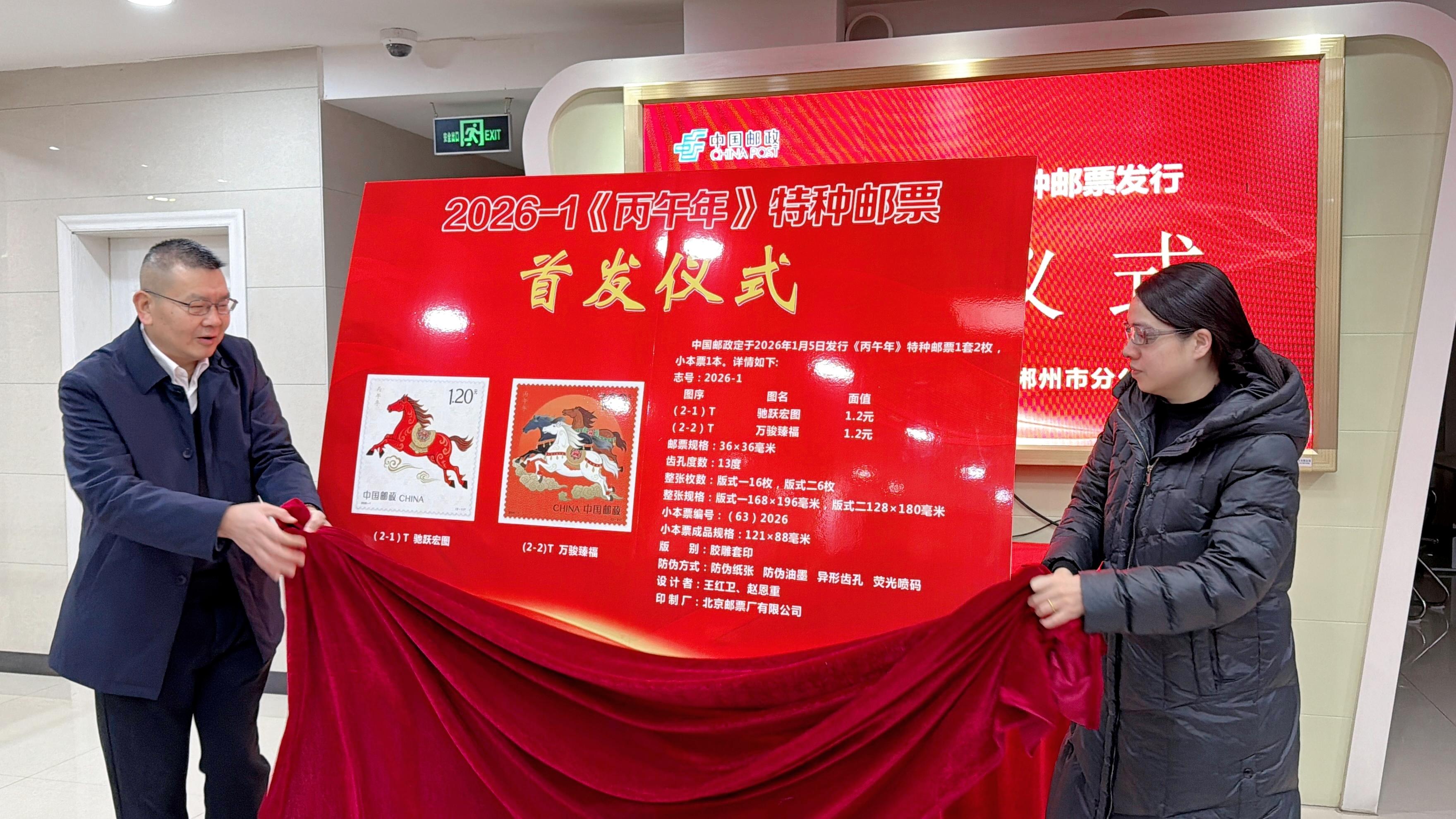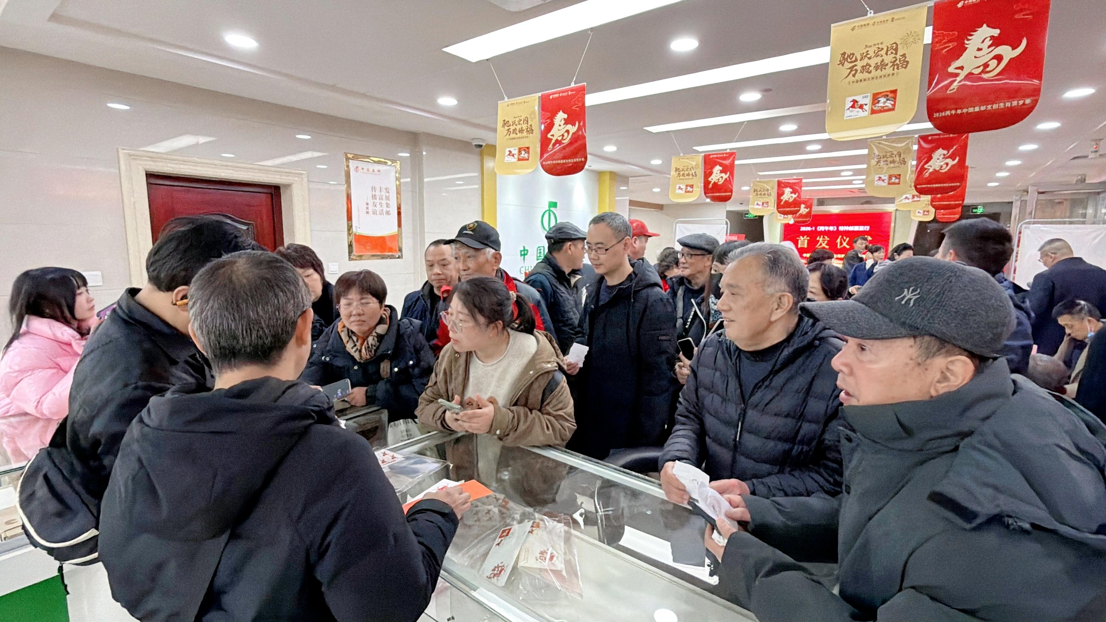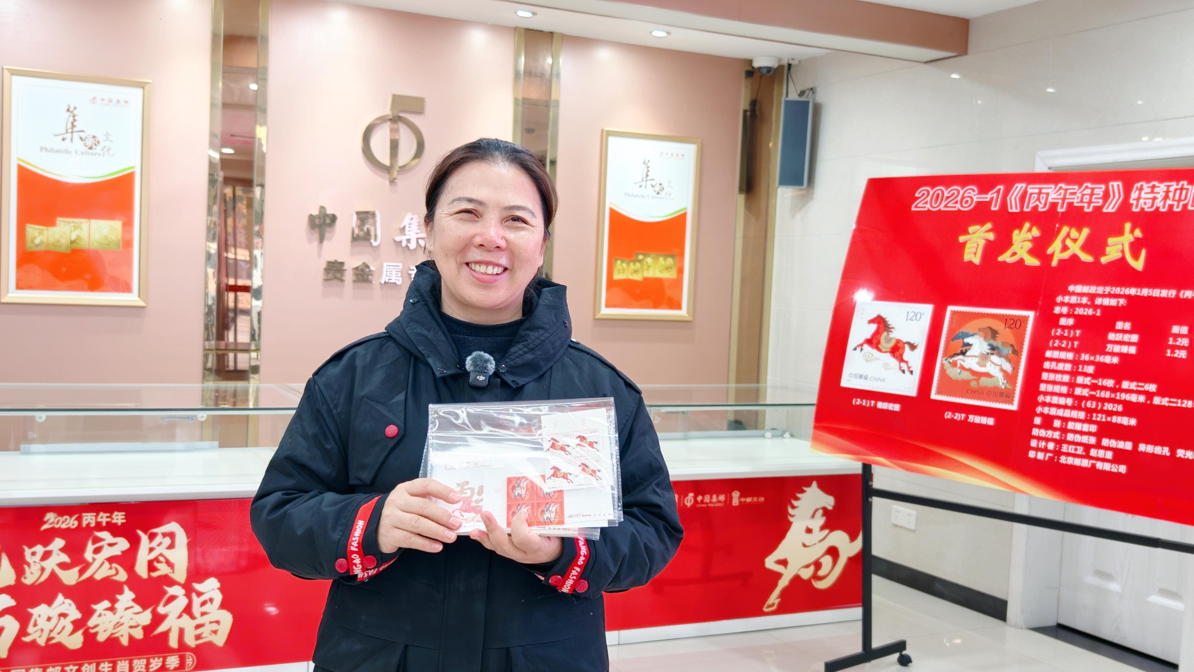据郴州市邮政分公司邮政业务部负责人李一帆介绍,自2026年1月5日起,《丙午年》特种邮票(马年生肖邮票)在全市指定邮政集邮网点、集邮网厅(jiyou.11185.cn)、中国邮政手机客户端以及中国邮政微邮局集邮微信商城和中国邮政商城微信小程序均有出售。同时,全国邮政集邮网点活动现场还有多款马年生肖主题邮品、特色文创产品展出,方便邮迷选购。