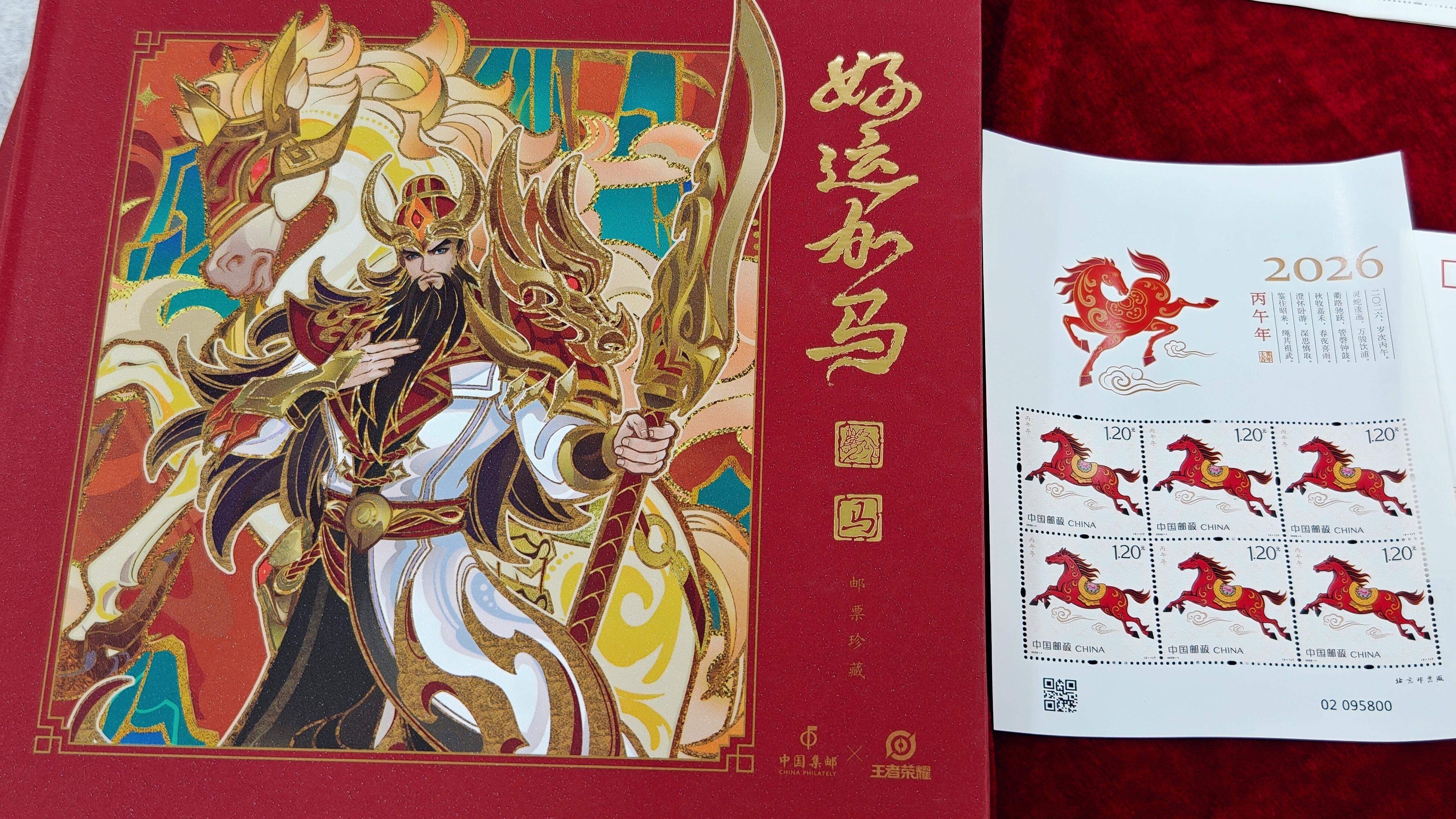 活动现场气氛火爆,吸引众多邮迷朋友争相购买并合影留念。本次马年生肖邮票图稿是中国邮政自1980年发行生肖邮票以来,首次打破专业壁垒,面向全民征集图稿,最终通过大众评审投票与专家评审诞生。《丙午年》特种邮票由王红卫、赵恩重设计,邮票中的骏马既展现出“一马当先”的开拓气概,也诠释了“万马奔腾”的团结力量,将马的形象与新时代中国人民奋发进取的精神风貌完美融合于方寸之间。邮票第一枚图名为“驰跃宏图”,以“腾跃新时代”为核心意象,展现了一匹红马奔驰于祥云之上,鬃毛如焰,四蹄生风;第二枚图名为“万骏臻福”,以“万马奔腾,驰骋千里”为核心意象,展现了三匹奔跑的骏马,三为众,寓意奔腾不息、共同奋进。图案背景及马身辅以祥云纹、火焰纹、缠枝纹等传统吉祥纹样,既隐喻福运连绵,亦强化东方美学底蕴。