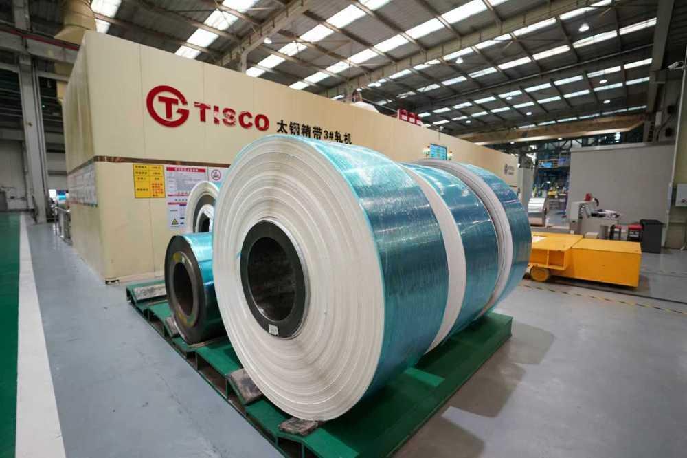 ▲中国宝武山西太钢不锈钢精密带钢有限公司车间一角。新华社记者 詹彦 摄