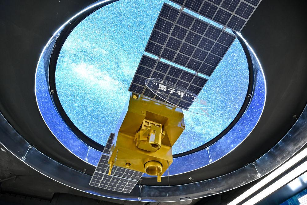 ▲在位于安徽省合肥市的中电信量子信息科技集团有限公司科技体验馆内拍摄的“墨子号”量子卫星模型(2025年7月1日摄)。新华社记者 张铖 摄