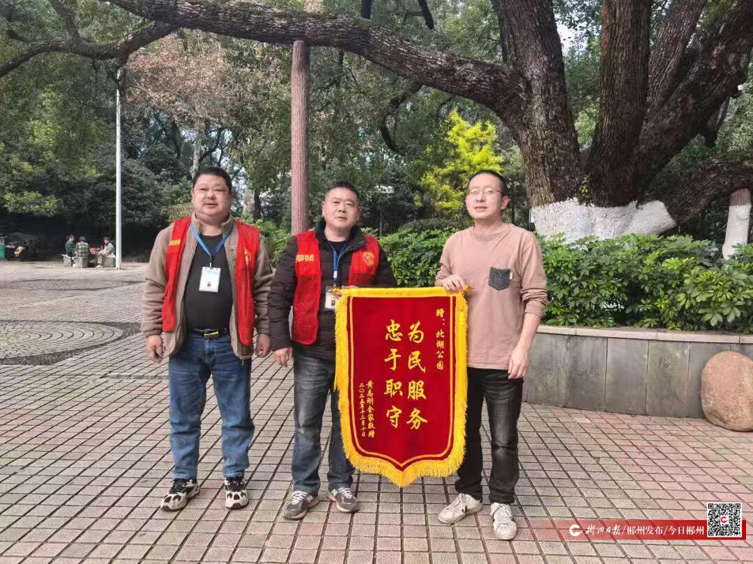 事后,老人家属黄志刚专程来到北湖公园管理所,送上锦旗并表达诚挚谢意。