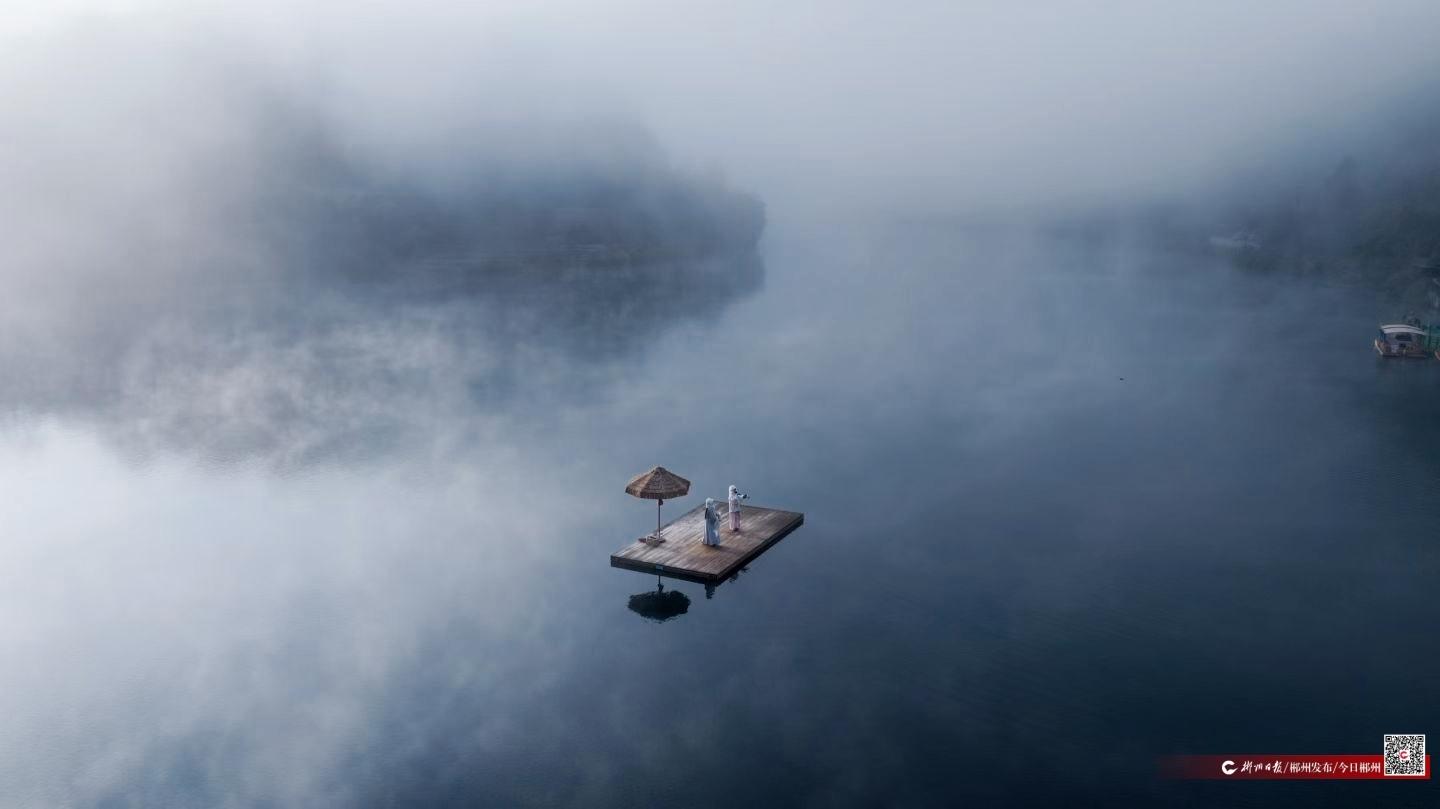 1月8日清晨,东江湖旅游区小东江景点,晨曦微露,湖水澄澈如镜,薄雾似轻纱般缓缓流动,氤氲缭绕。小船悠然泛舟湖上,船桨轻摇,涟漪微漾。等阳光穿透薄雾,洒下细碎金光,暖阳、雾霭、碧水、舟影相融,一幅“舟行碧波上,人在画中游”绝美的冬日画卷跃然眼前。