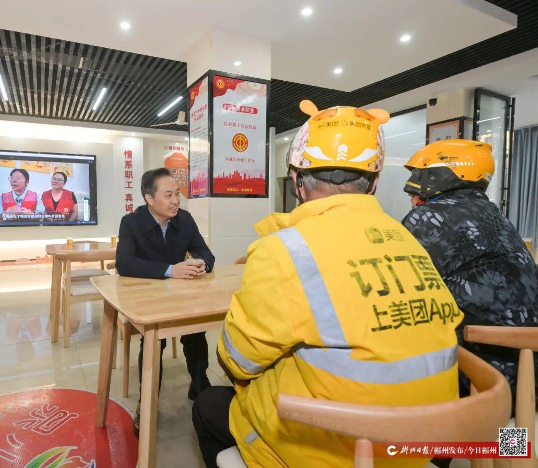 吴巨培先后来到盈丰国际小区、龙泉社区“泉小驿”新就业群体爱心驿站,实地了解有关工作情况,与外卖、快递小哥面对面交流,听取他们工作中存在的困难问题和意见建议。
