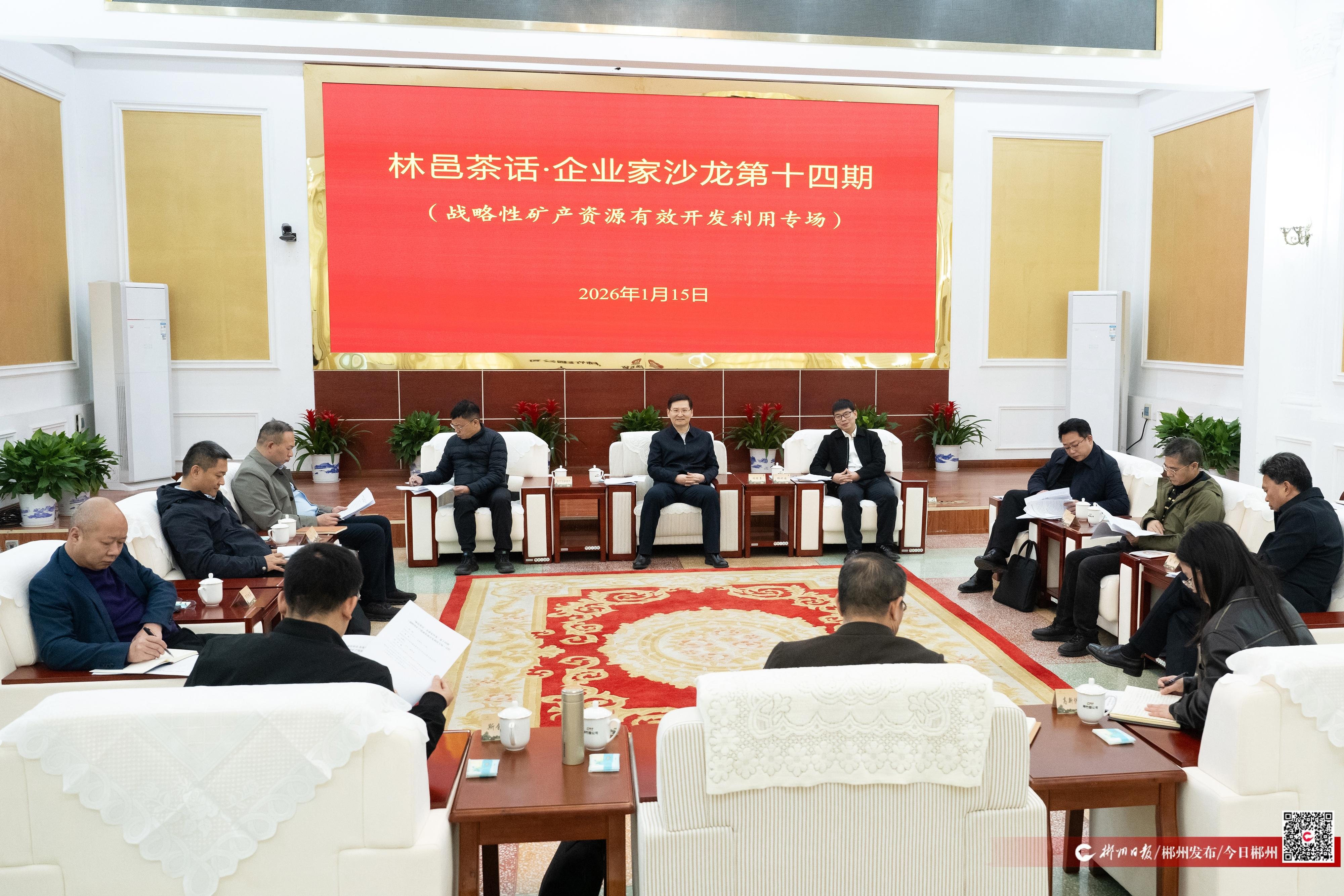 1月15日,市委副书记、市长阚保勇聚焦战略性矿产资源有效开发利用,到郴州高新区相关企业调研并主持开展林邑茶话·企业家沙龙第十四期活动。