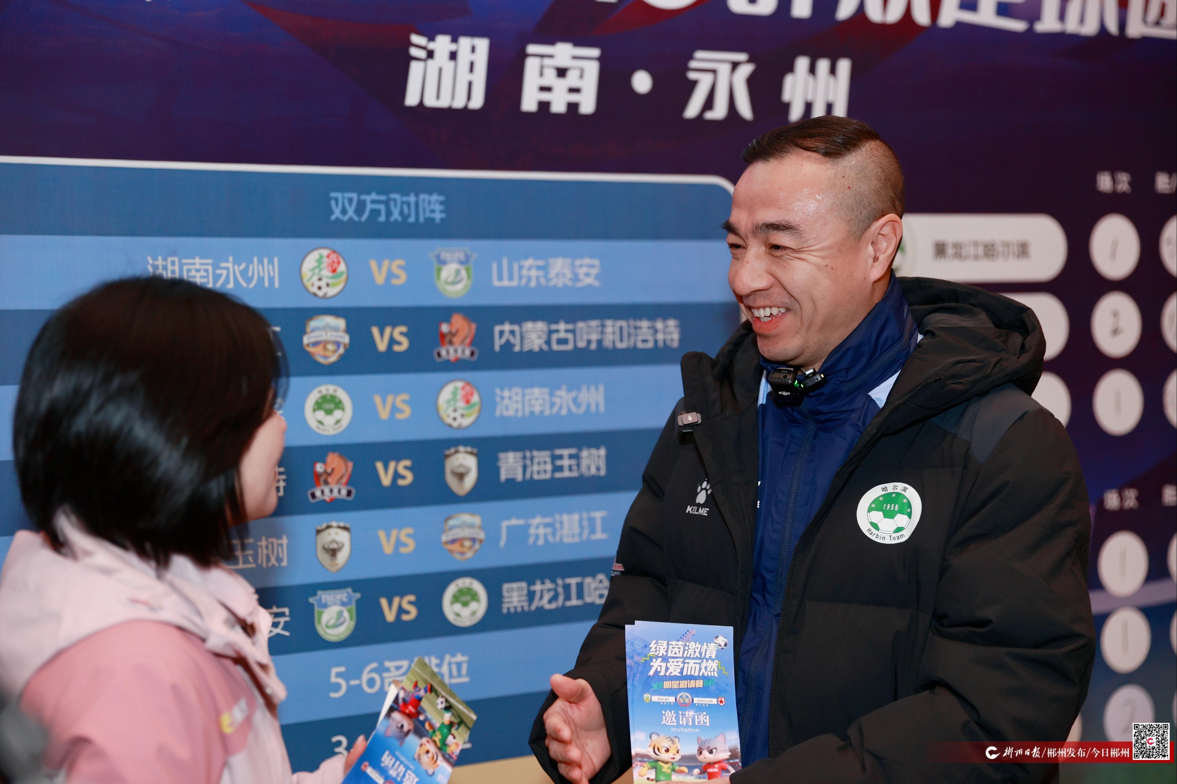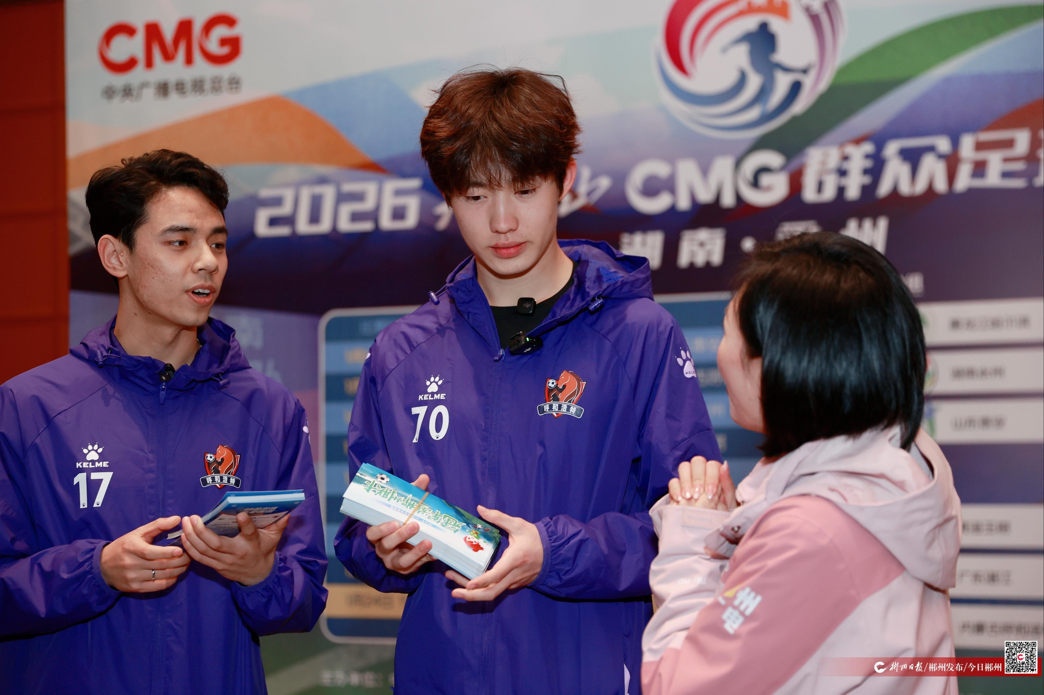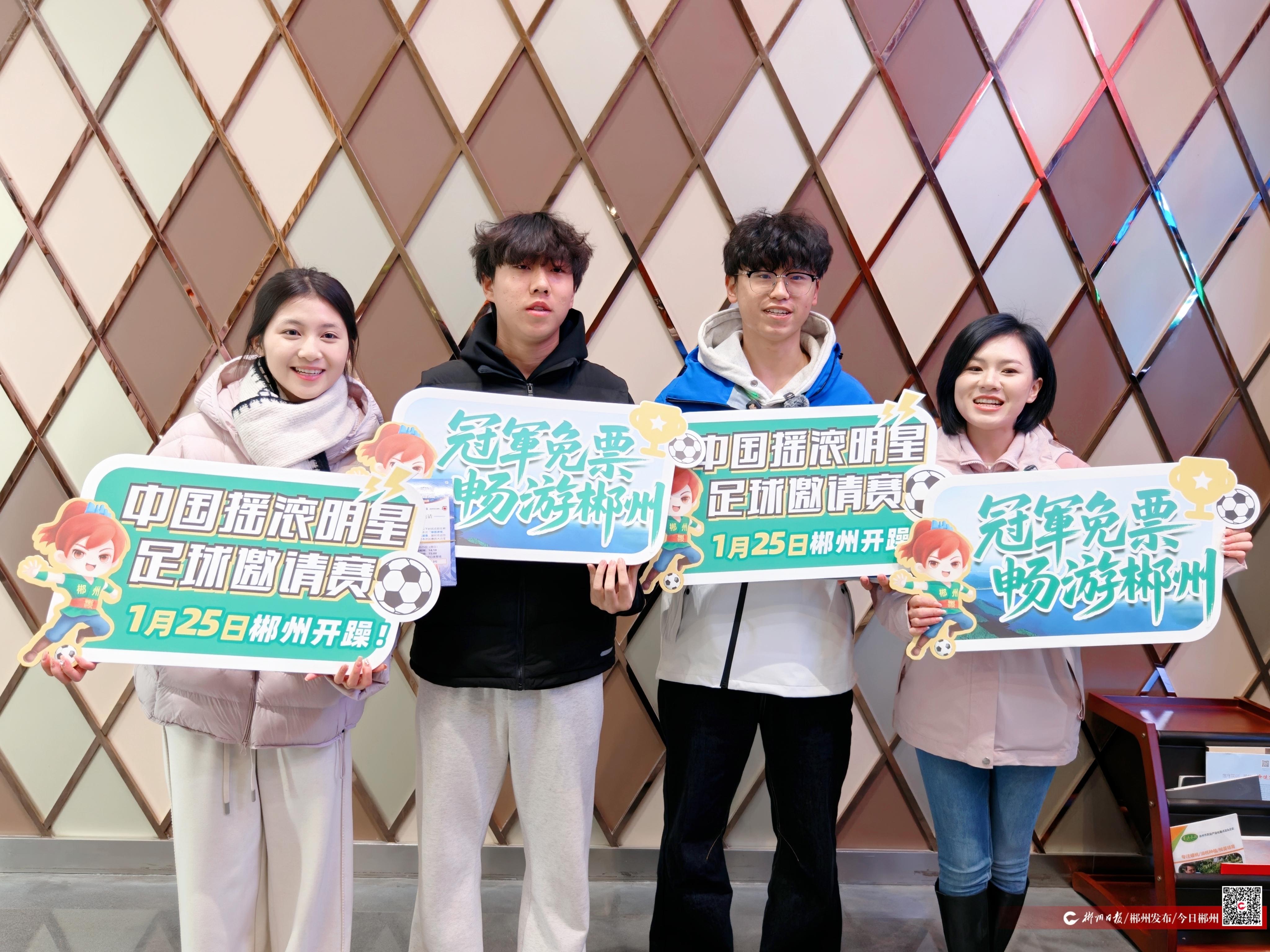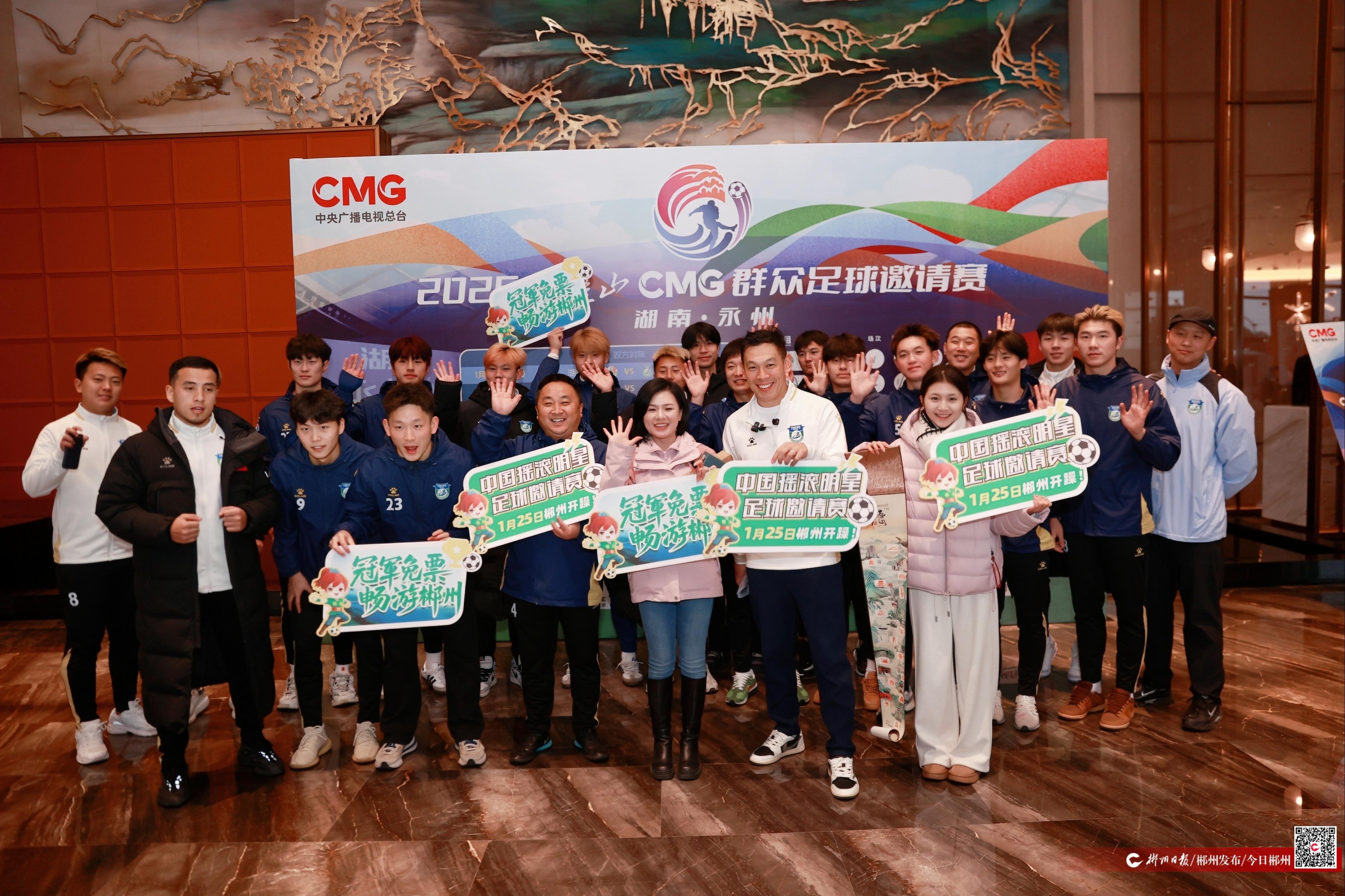 1月21日,湘超郴州赛区组委会赴2026CMG群众足球邀请赛举办地永州,向湖南永州队、广东湛江队、内蒙古呼和浩特队、黑龙江哈尔滨队、山东泰安队、青海玉树队六支队伍,送上“冠军游郴州联卡”,诚邀球队成员及家人走进“天下第十八福地”,饱览山水风光、感受风土人情。