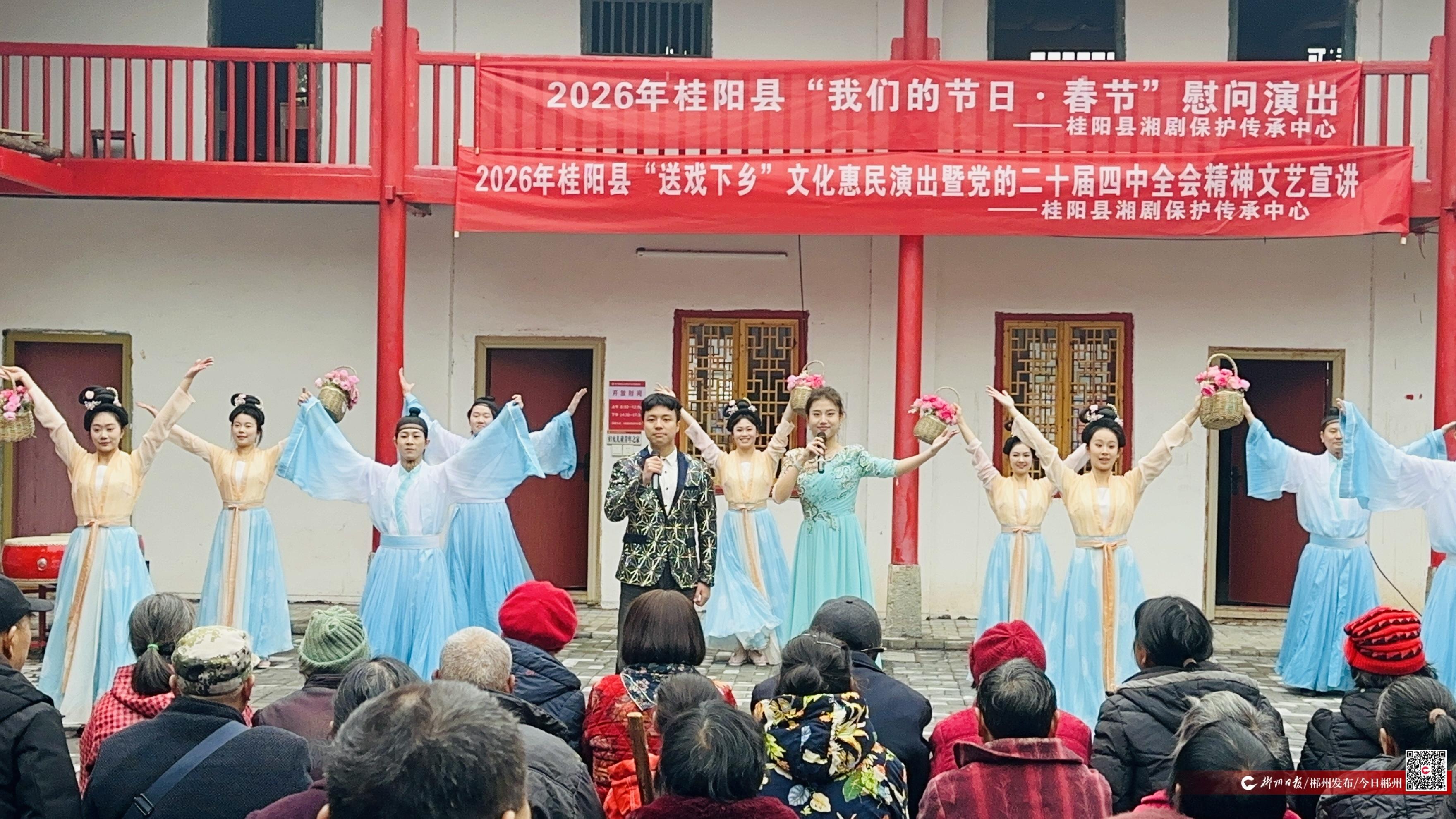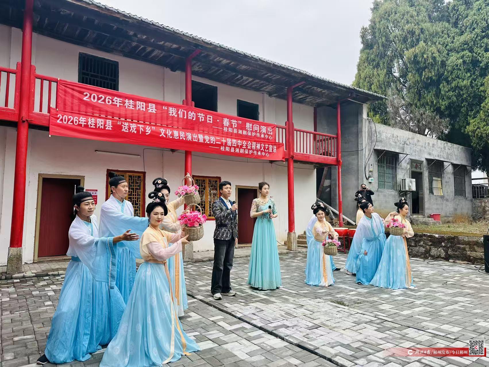此次演出是桂阳县持续开展的春节文化惠民系列活动之一。1月24日,该县2026年春节文化惠民活动正式启动,旨在通过文艺形式丰富基层群众的精神文化生活。近年来,桂阳县依托“百座戏台千场戏”等品牌活动,将包括国家级非物质文化遗产桂阳湘剧在内的优秀文艺作品持续送往基层,有效丰富了人民群众的精神文化生活。