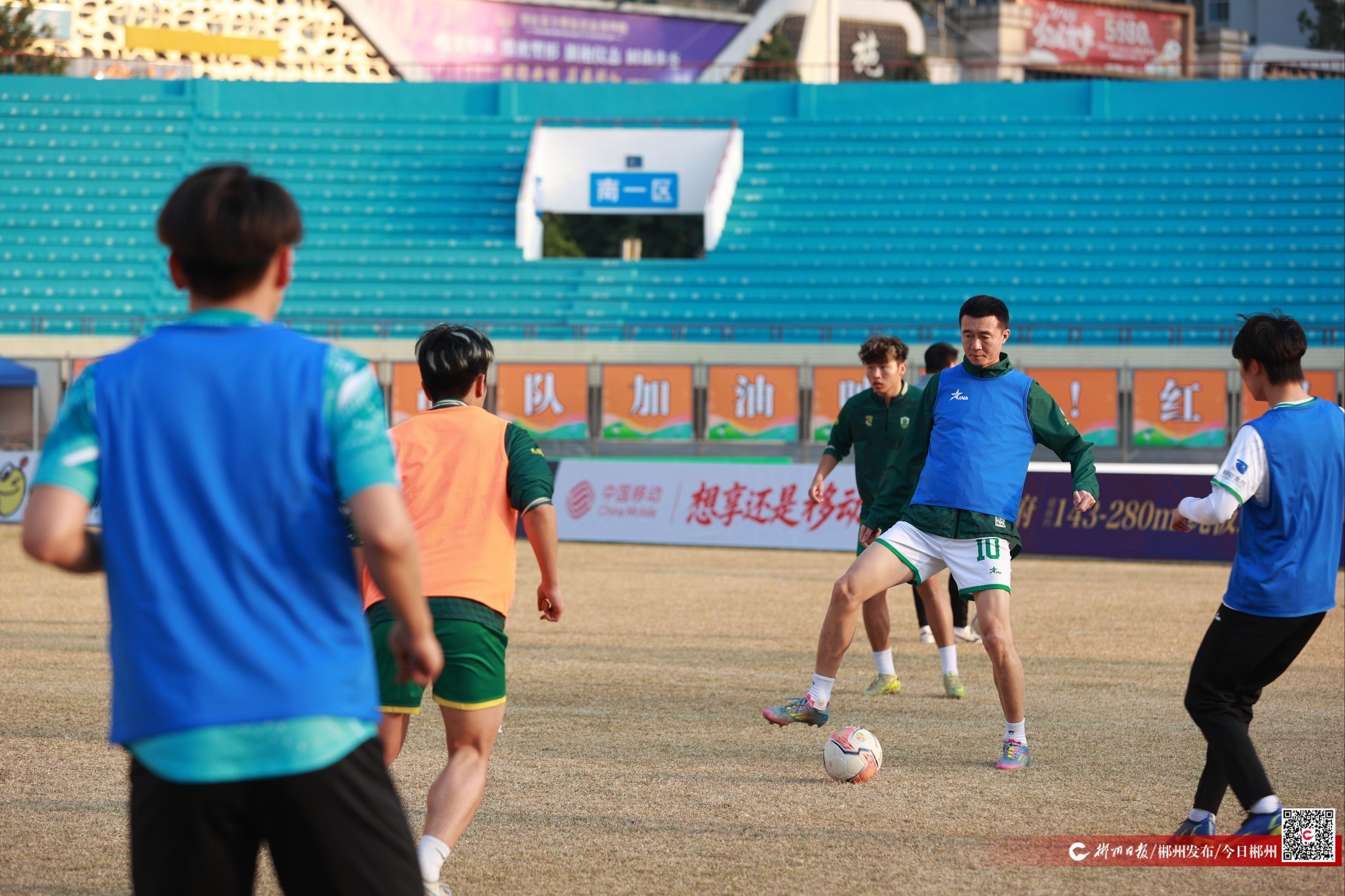 此次出征的郴州队阵容有所调整,相比2025年参加“湘超”时期,队伍中出现了不少新面孔。为尽快磨合阵容、适应客场环境,球队抓紧赛前宝贵时间展开针对性演练。