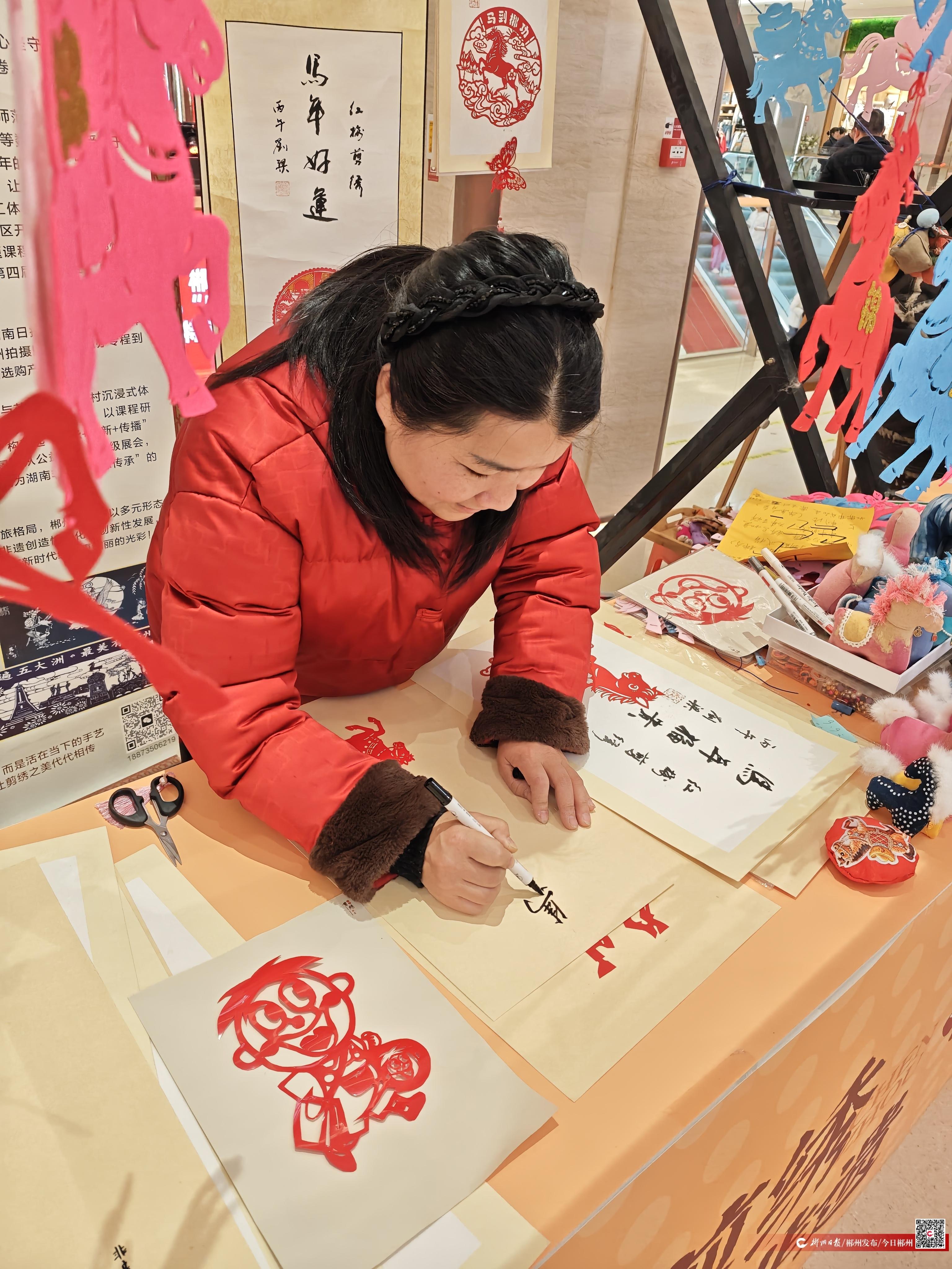 活动现场,文化体验区同样人气十足。在郴州剪绣非遗展位前,传承人李红梅拿起自己的马年新春剪纸作品一边展示一边说:“看到自己手艺装点千家万户的新春,特别有意义。”