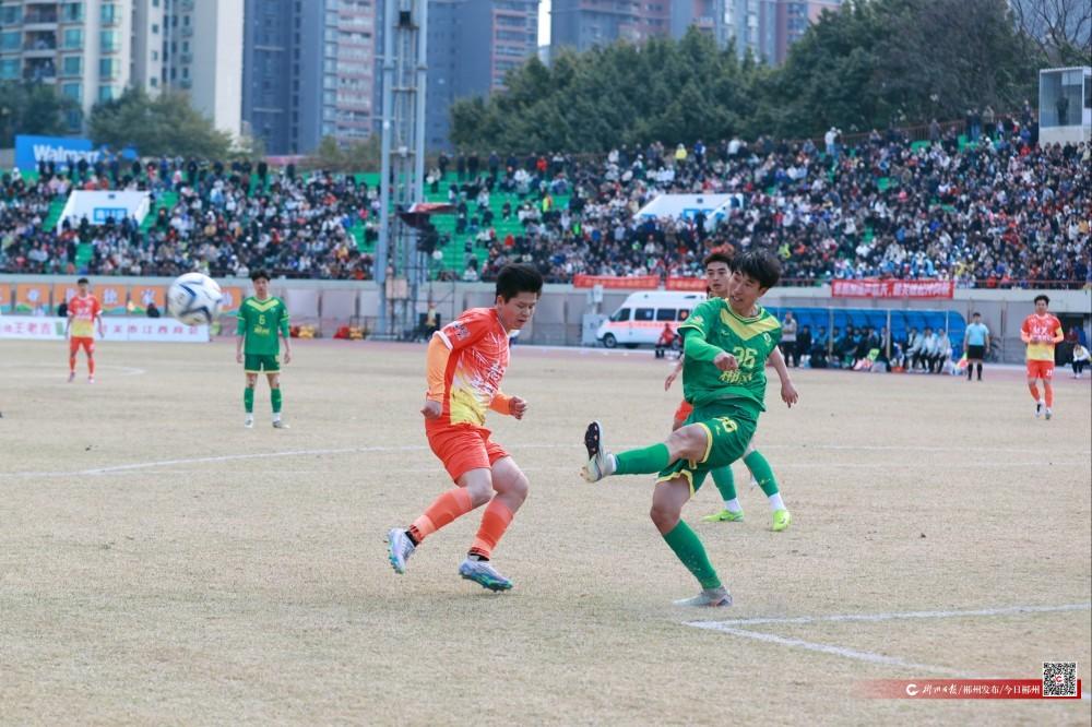 1月31日下午,2026“英东杯”粤湘赣“红三角”城市足球联赛第二场焦点战激情开赛。郴州队客场挑战东道主韶关队,最终郴州队1:2憾负韶关队。