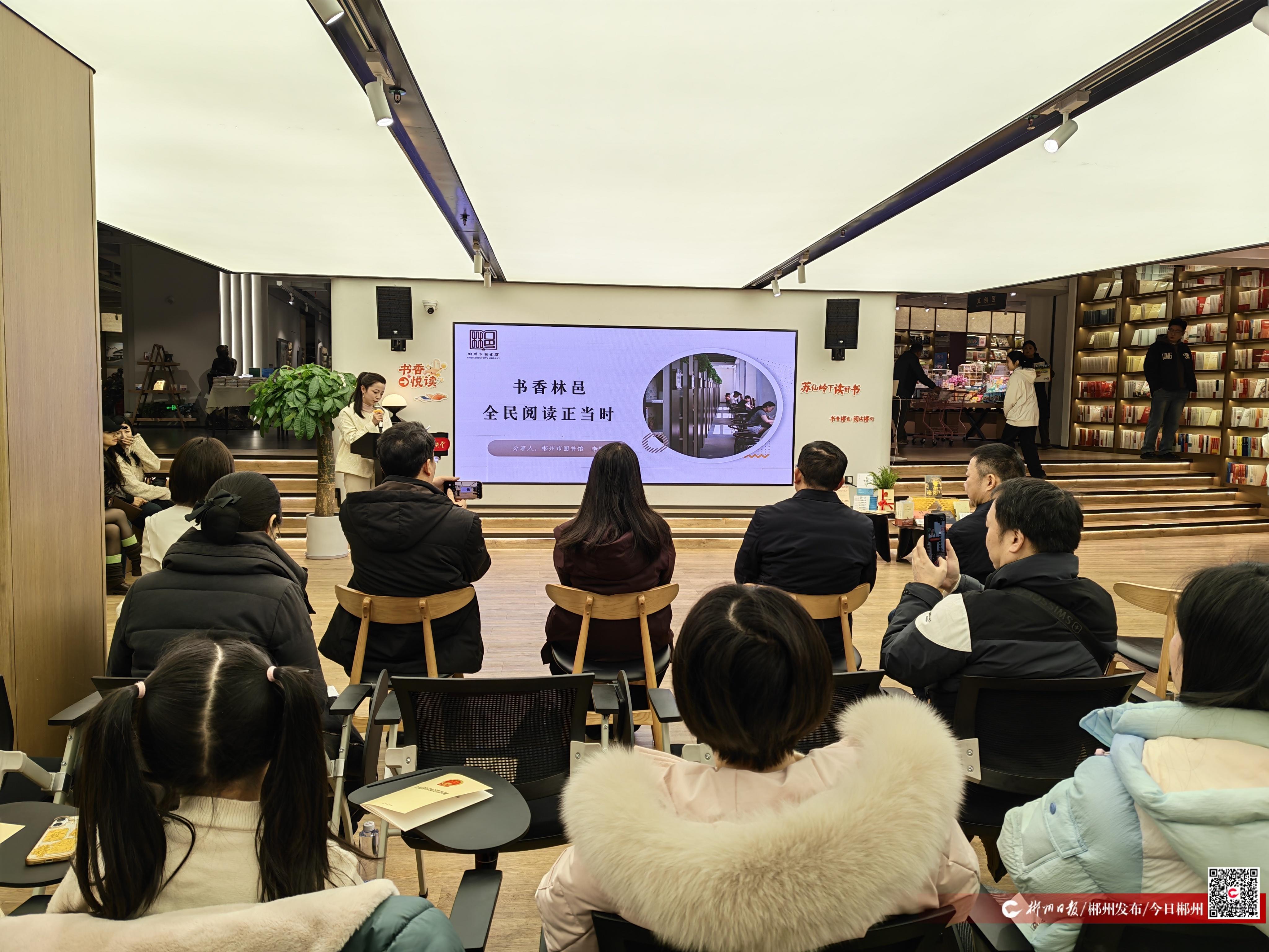 2月1日下午,郴州书城活动区内座无虚席,“苏仙岭下读好书——书香郴直·阅读郴心”第二十三期分享交流活动在此举行。