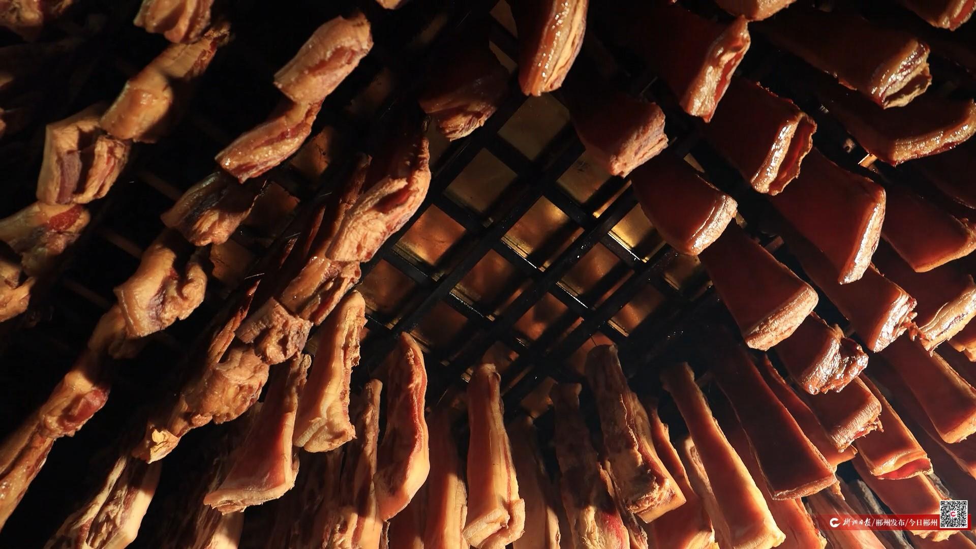 1月30日,走进桂阳县白水瑶族乡民族村,空气中弥漫着独特的果木熏香,家家户户、加工车间正忙于赶制传统腊肉,为即将到来的新春佳节储备风味。
