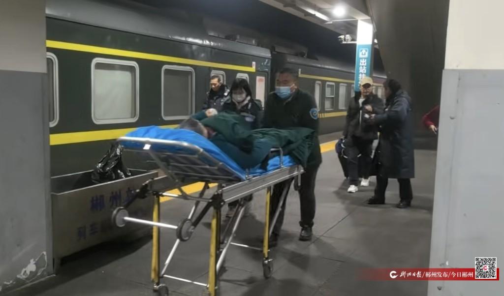 当天1时20分,T369次列车准时抵达郴州火车站。早已等候在现场的客运值班员快速与列车长对接,协同医务人员将患病旅客平稳转移至急救担架,随后送往市第三人民医院接受进一步检查和治疗。