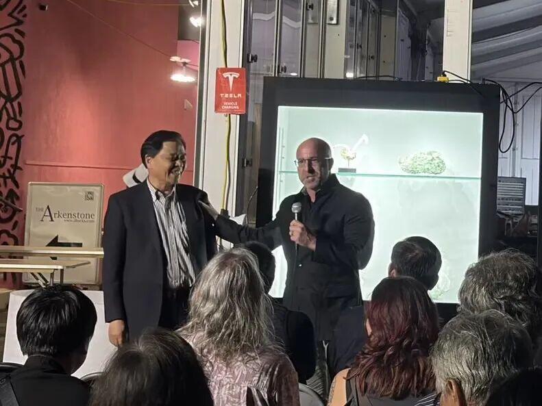 活动以“飞向蓝天的恐龙——恐龙世界的矿晶王国”为主题,由矿晶领域资深人士郑建蓉、郭周平分别以中文、英文双语主持,二人皆是最早将中国矿物标本推向国际市场的行业先行者。