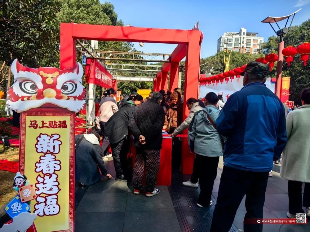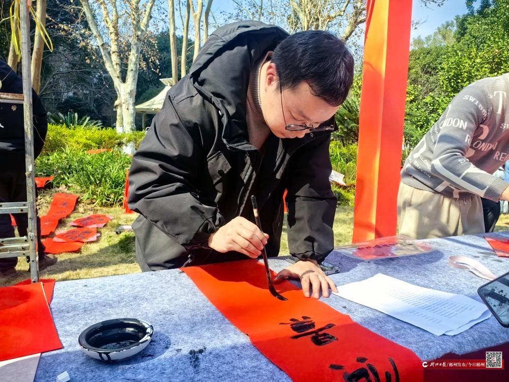 活动现场,十余位书法爱好者铺纸研墨、挥毫书写,“马跃春风添锦绣,福临北湖启新程”等一副副寓意吉祥的春联和饱满有力的“福”字跃然纸上。市民有序排队,或静候定制春联,或挑选心仪“福”字,手捧墨宝的人们脸上洋溢着笑容。附近居民曹湘华说:“手写的春联更有年味,正好把福气带回家。”