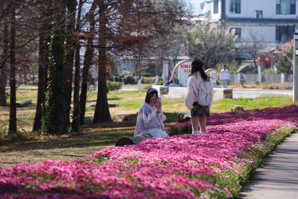 ▲1月17日,游客在古生村生态廊道拍照留念。(赵志伟 摄)