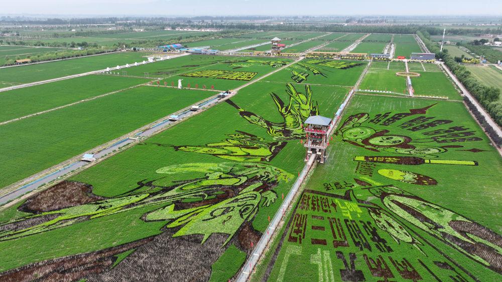 ▲2025年6月18日,稻渔空间乡村生态观光园的巨幅稻田画(无人机照片)。新华社记者 王鹏 摄