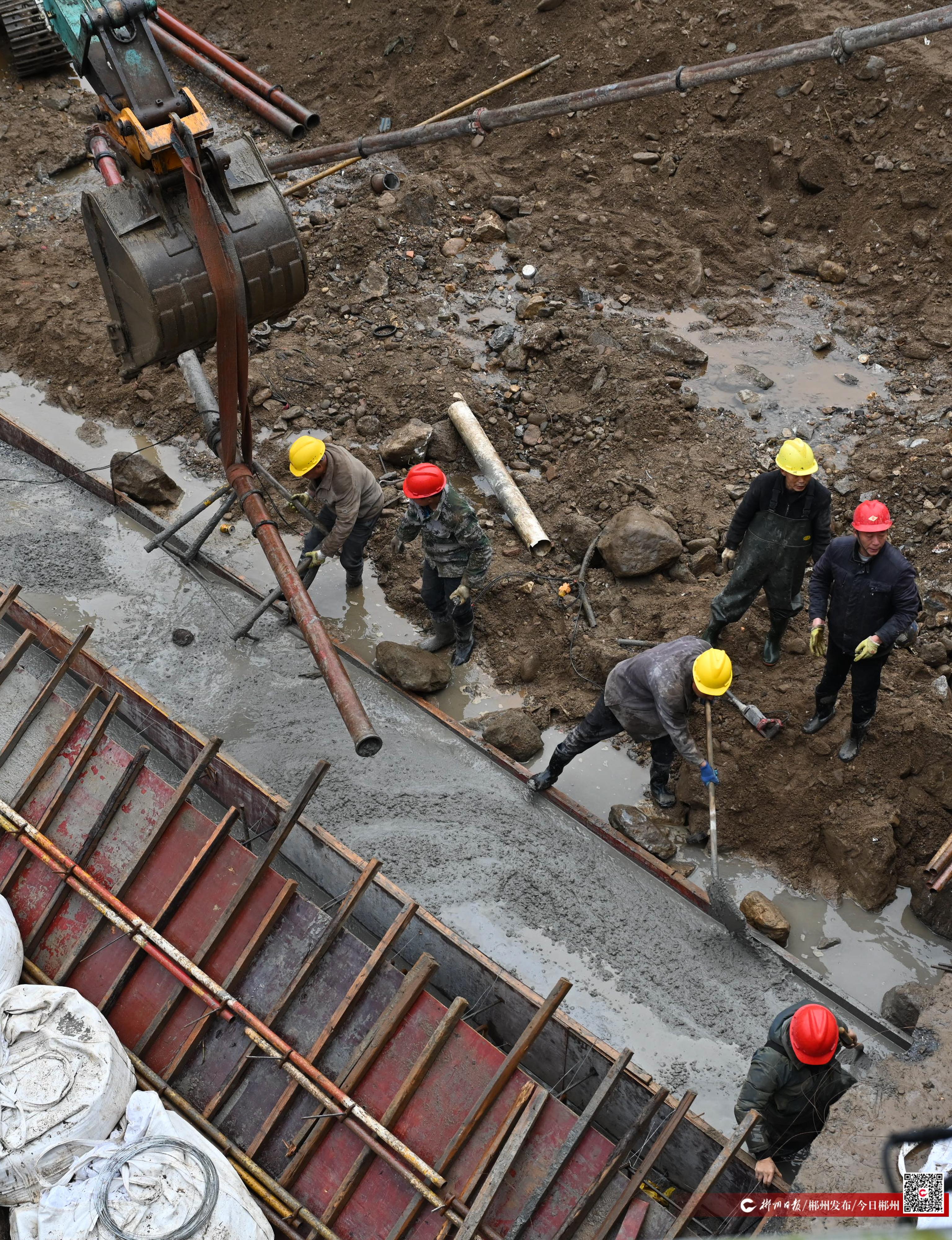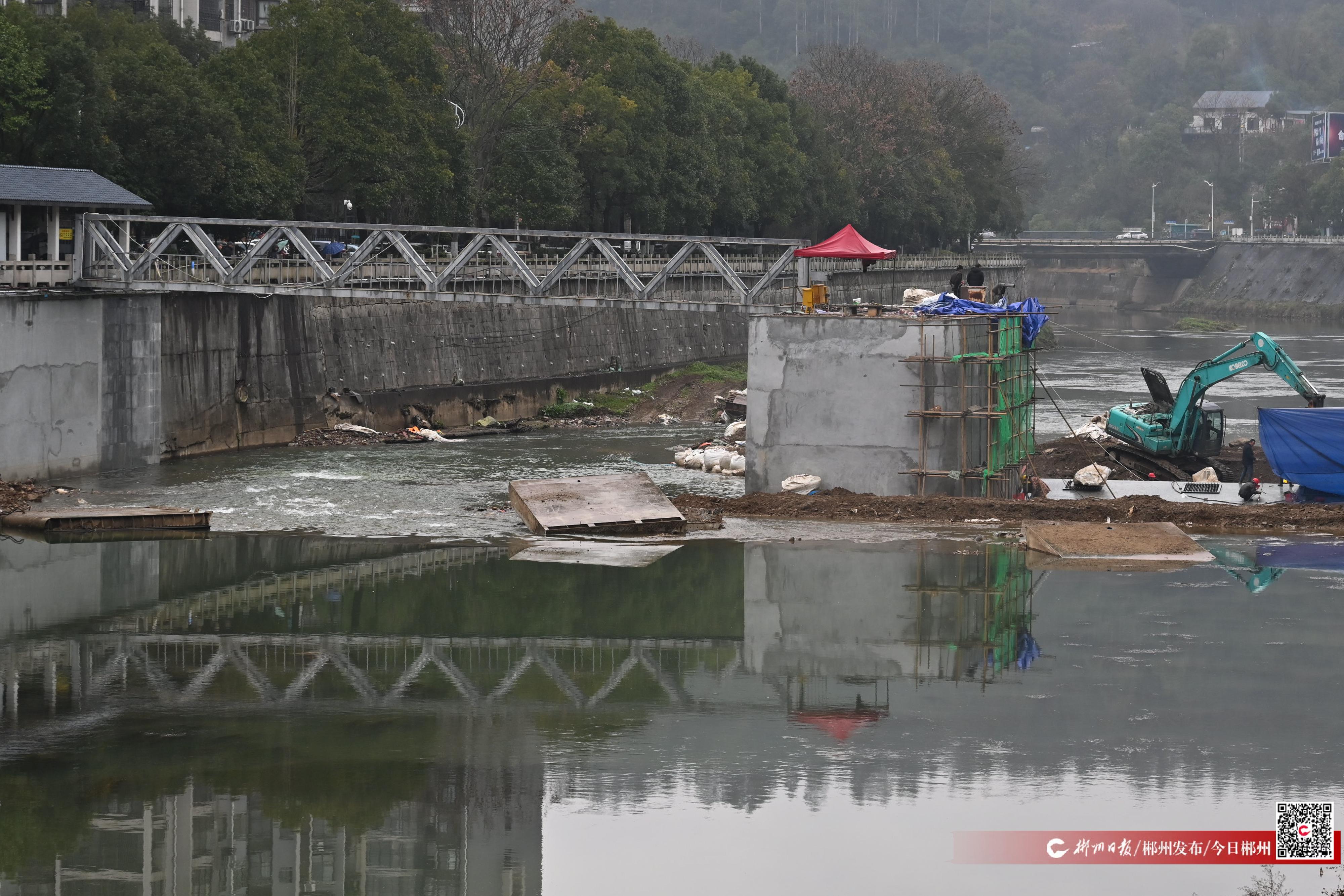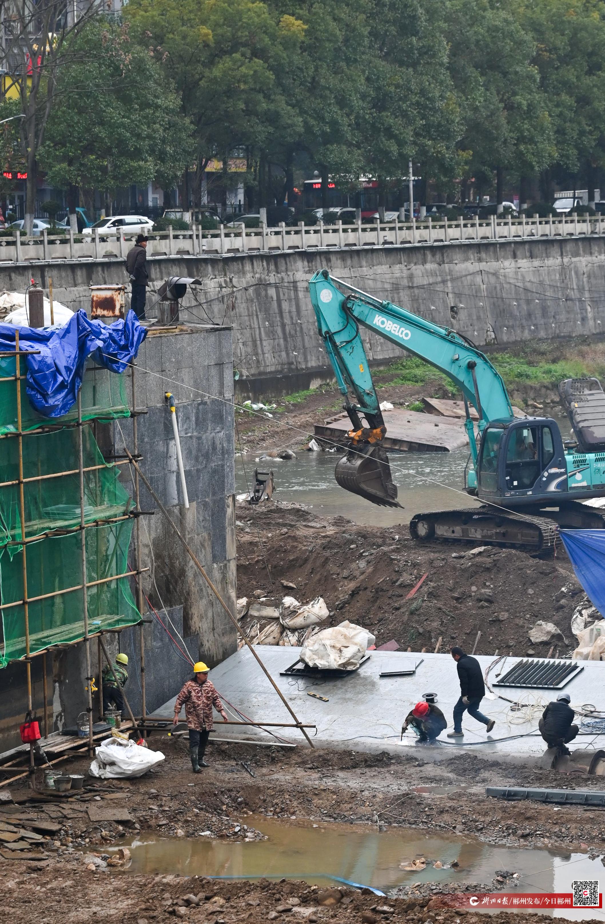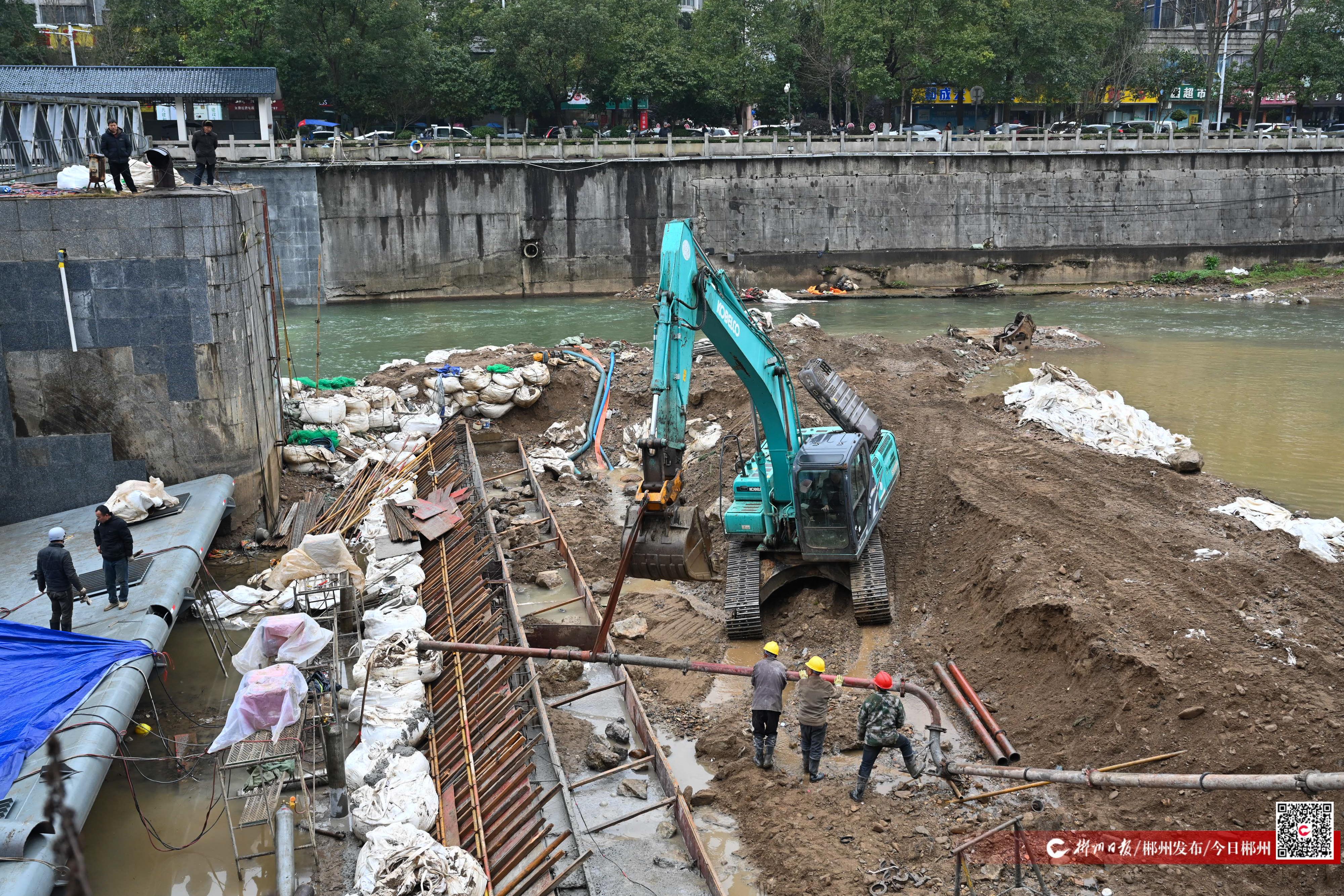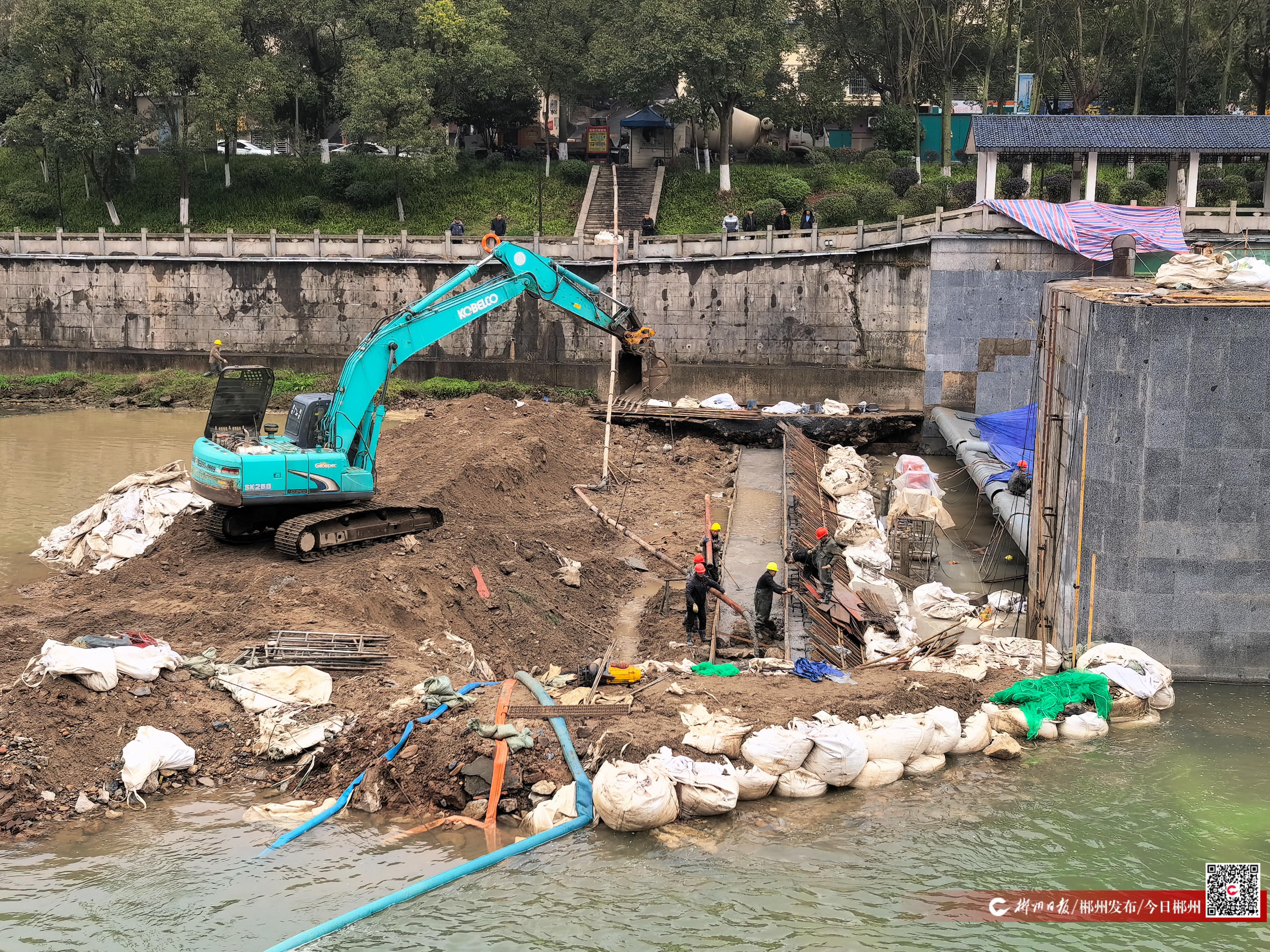 2月11日,郴江综合治理工程苏仙段,工人正抢抓枯水期修建水坝。新春伊始,我市以“四水联动”“八水共治”为抓手,全面提速河道治理、病险水库与水闸除险加固,着力消除水利设施安全隐患,提升水源调蓄与城乡供水保障能力。