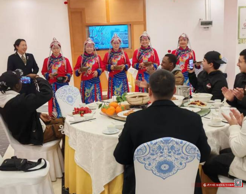 ▲国际友人体验畲族餐饮文化
