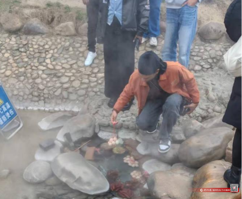 ▲国际友人体验温泉煮蛋