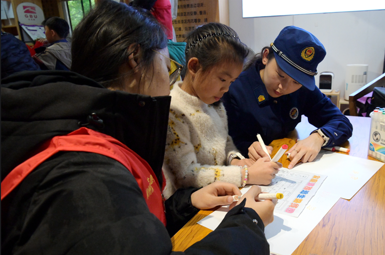 本次活动紧扣“守护快乐童年,共筑安全防线”的主题要求,将消防安全教育作为关爱服务的核心环节。消防宣传员与“返家乡”大学生志愿者密切配合,精心设计了系列互动环节。在“安全知识小课堂”上,宣传员运用趣味问答和情景模拟,生动讲解了家庭安全用火用电、冬季取暖注意事项以及烟花爆竹的安全燃放须知。“如果油锅着火了,我们第一步该怎么办?”贴近生活的提问引发了孩子们的积极思考与回答。