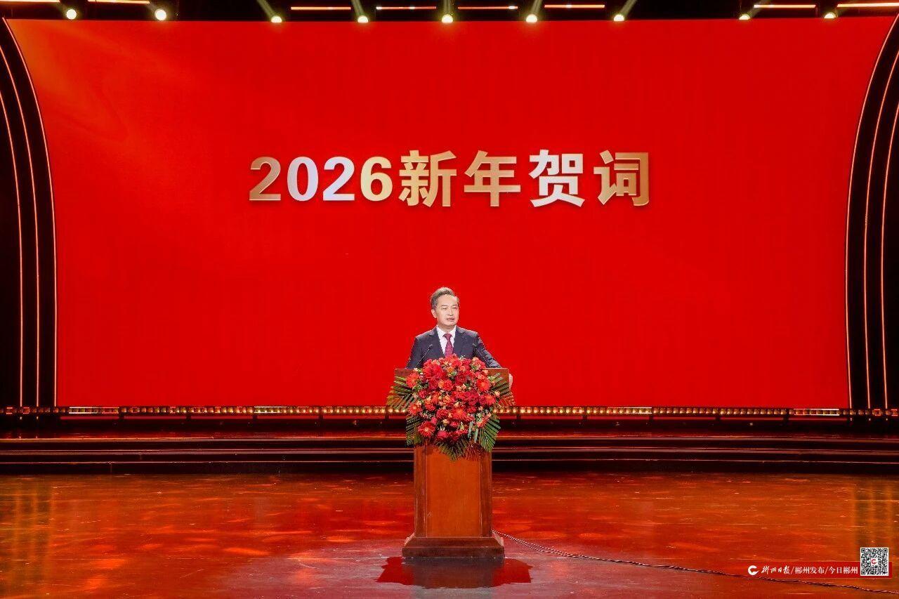“满园‘郴’色关不住”“柳暗花明又一‘郴’”“天下谁人不识‘郴’”“‘郴’势而上再出发”,吴巨培热情洋溢地用四句话表达对郴州的无限热爱。他说,近年来,郴州上下牢记嘱托、感恩奋进,始终沿着习近平总书记指引的方向奋勇前进,在省委、省政府的坚强领导下,锚定“三高四新”美好蓝图,紧紧聚焦“四大定位”,持续深化“六大新行动”,全面彰显“七个新担当”,打赢一场场大战大考,呈现来势好、大局稳、风气正、潜力大的良好局面,绘就了郴州画卷,激发了郴州热血,讲好了郴州故事,彰显了郴州担当。2026年,是“十五五”规划开局之年,希望大家鼓足“快马加鞭”的冲天干劲,激发“万马奔腾”的比学赶超,保持“龙马精神”的昂扬状态,创造“一马当先”的实干成效,一步一个脚印,把恢宏图景变为生动场景,奋力推进中国式现代化郴州实践开创新局面。