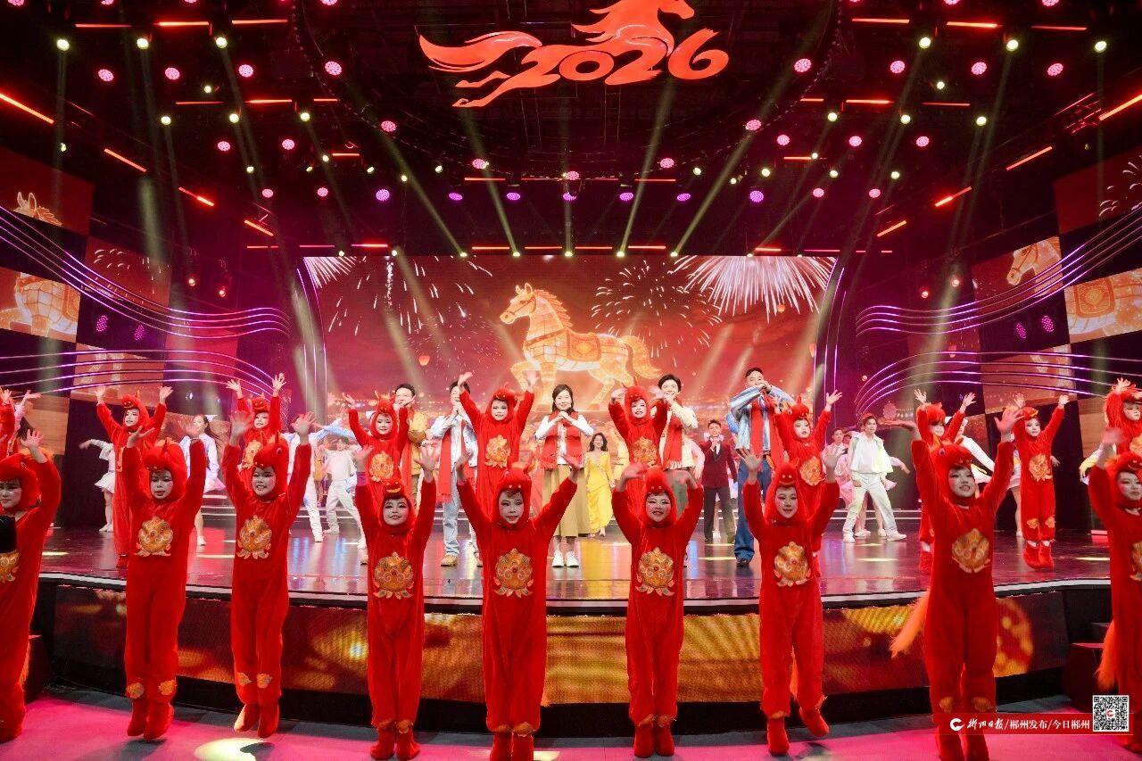 随后举行的郴州市春节联欢晚会,围绕“奋斗的人”“感动的城”“奔腾的马”三大核心意象呈现城市发展、温情瞬间与美好期许,以情景演绎生动串联各个篇章,通过歌舞、现场访谈、魔术等丰富多彩的原创节目,营造出喜庆热烈的氛围,兼具时尚感、现代感与科技感,全面展现了郴州“十四五”发展成就以及“十五五”的美好愿景。