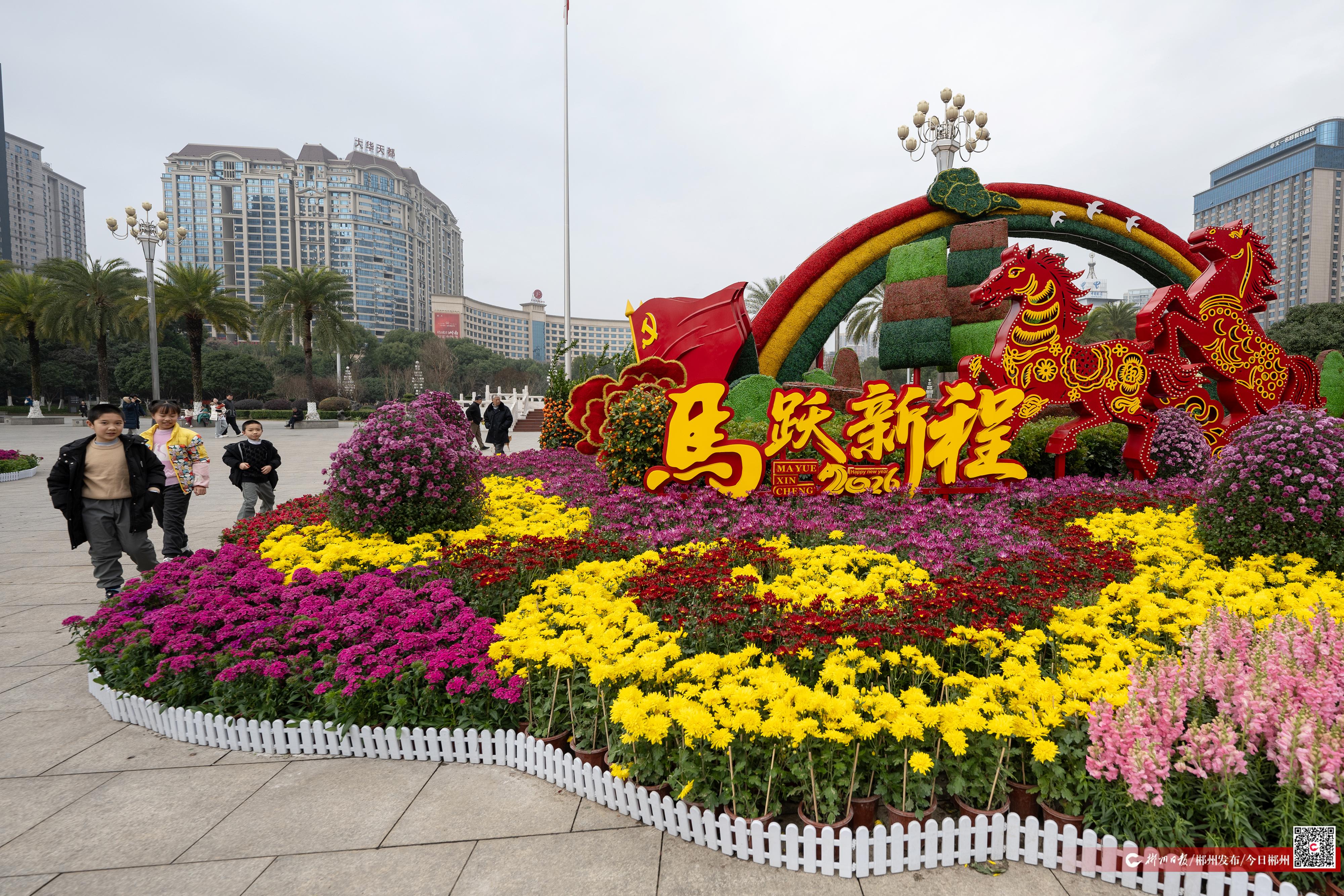 2月12日,市城区五岭广场的新春主题景观吸引众多市民游客驻足观赏、拍照。该景观以传统生肖文化为灵感,生动展现出奔腾向前、开拓进取的精神风貌,营造出喜庆祥和、生机勃勃的节日氛围。春节临近,我市各大广场、公园及公共场所纷纷布置新春景观,成为市民拍照的热门去处。