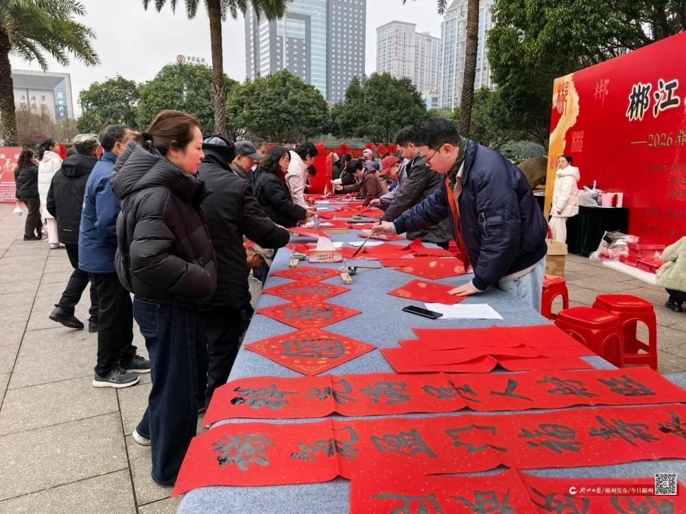2月12日,新春将至,郴州市城区五岭广场上,一场以“郴江墨韵 骏马迎春”为主题的迎新春送春联活动如约而至。连续五年的文化之约,让这里不仅成为热闹的活动现场,更成为市民感受传统年俗、触摸城市温度的暖心之地。