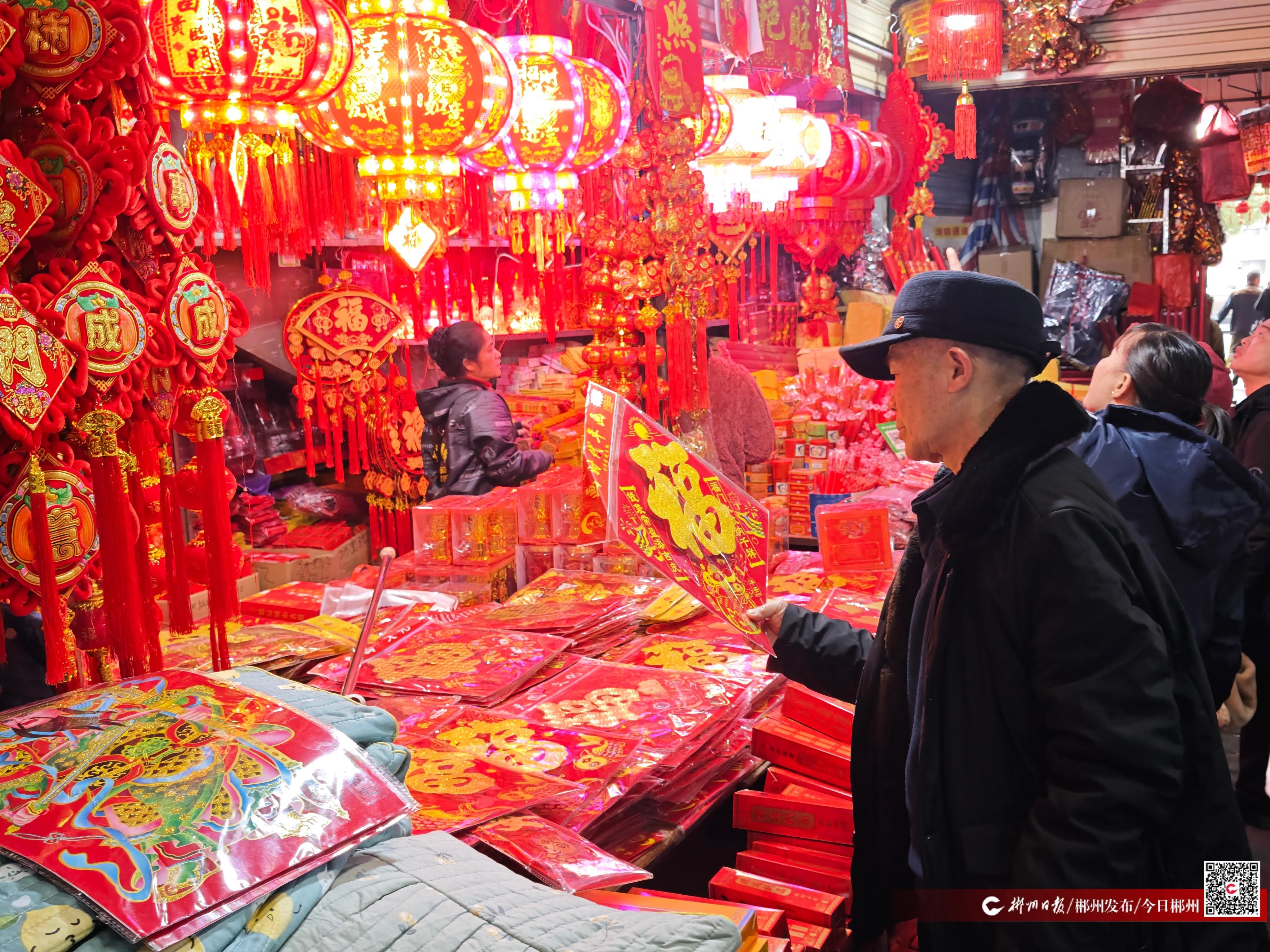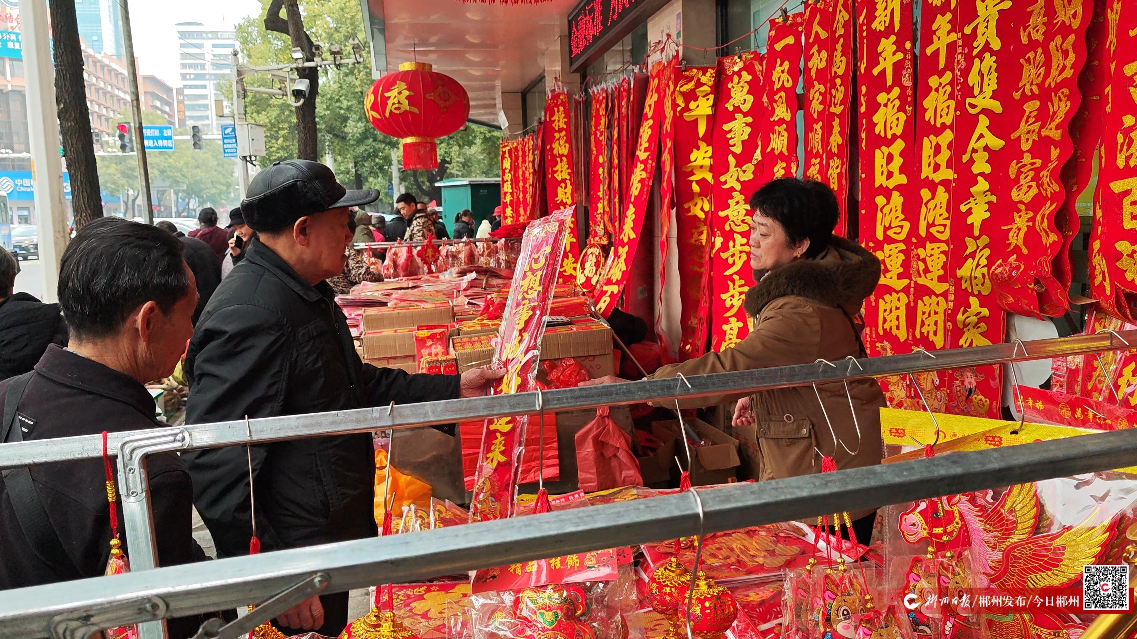 这股年味,同样弥漫在郴江商贸城。不少摊主已提前挂出春联和年节饰品,红底金字的对联笔触遒劲,精巧窗花栩栩如生,火红的中国结与福字贴堆叠成小山。“马年主题的饰品卖得最好,店里早就断货了,进货都要提前三天预定。”售卖春联的李女士忙得脚不沾地,脸上却笑意盈盈。
