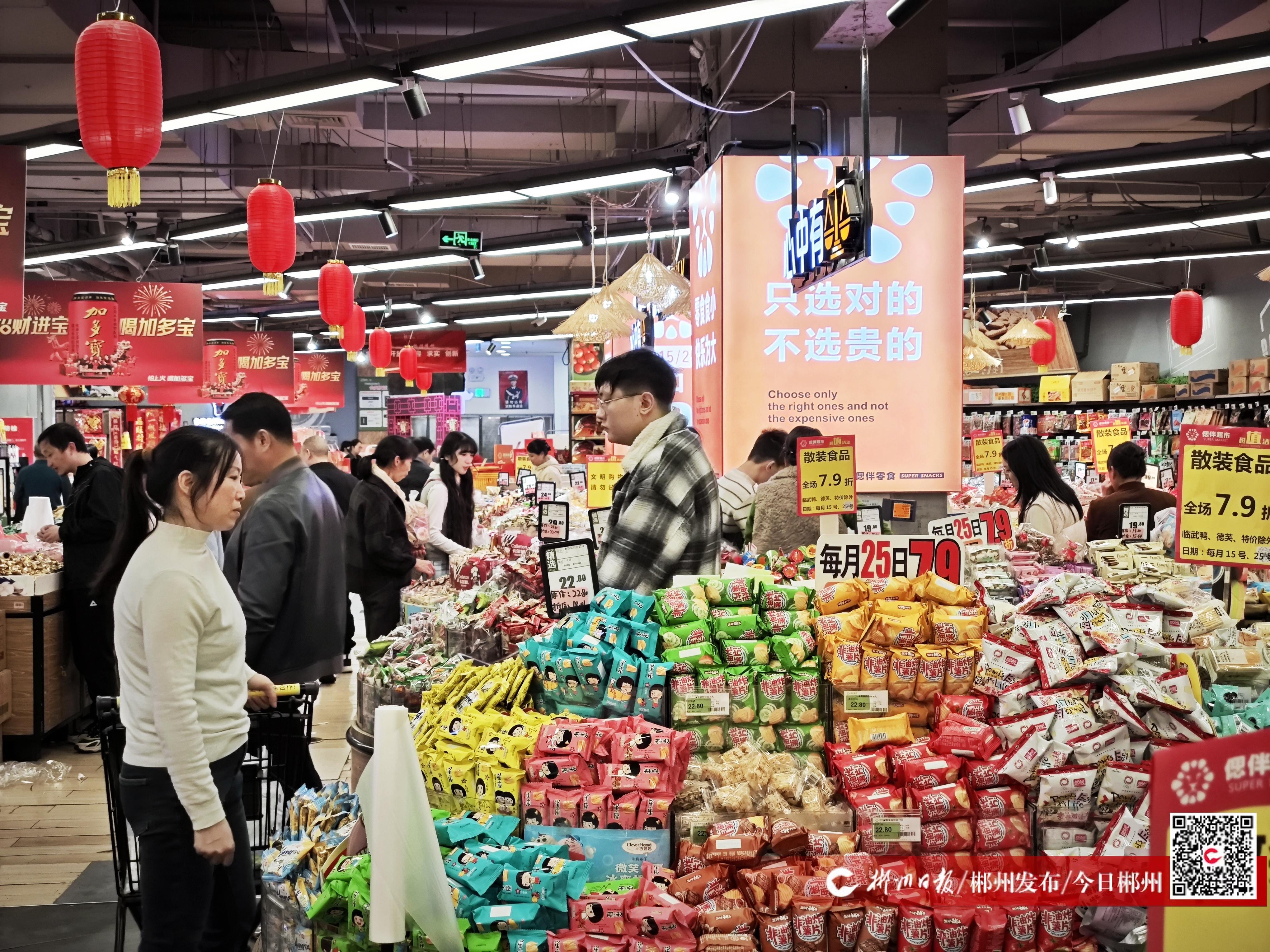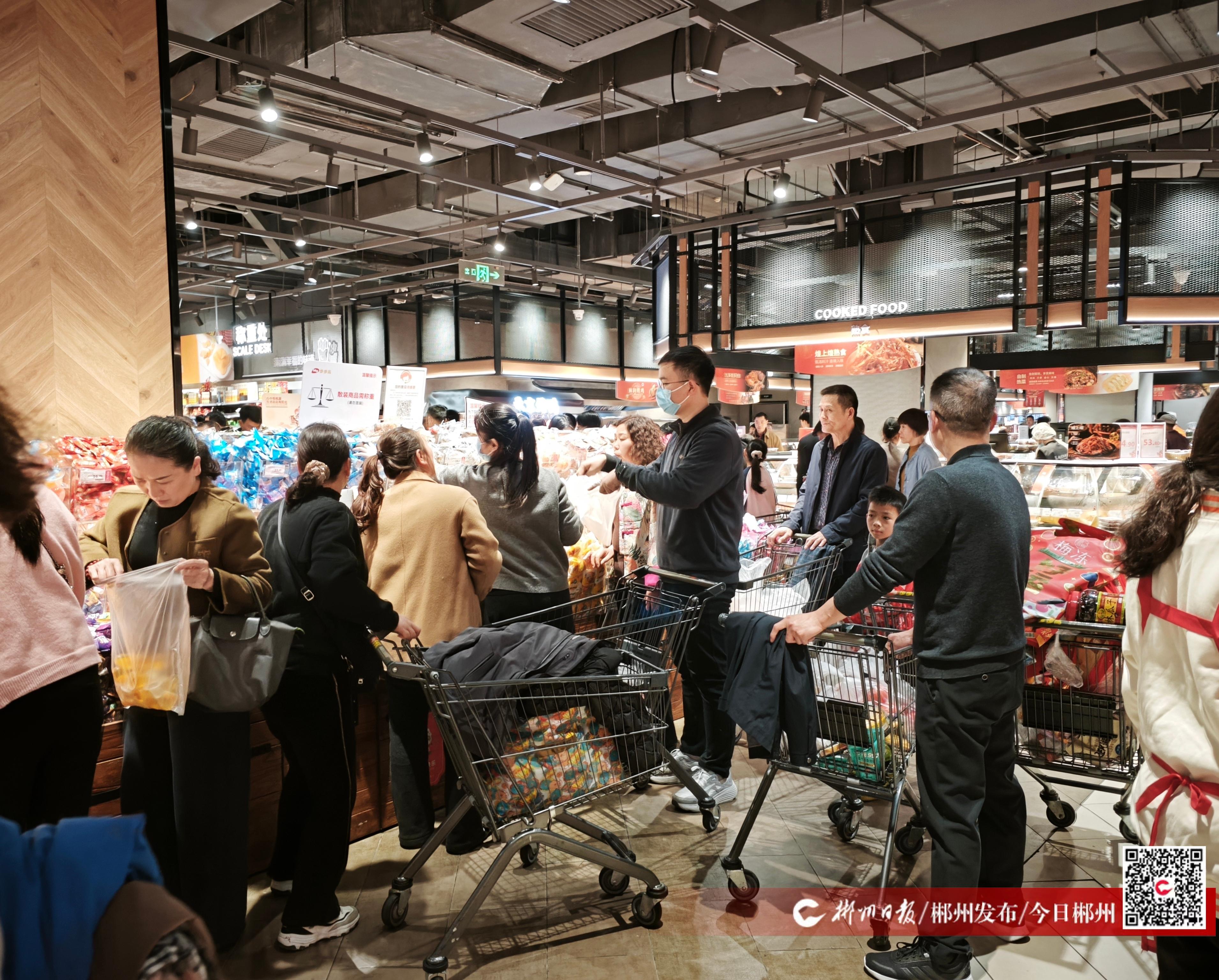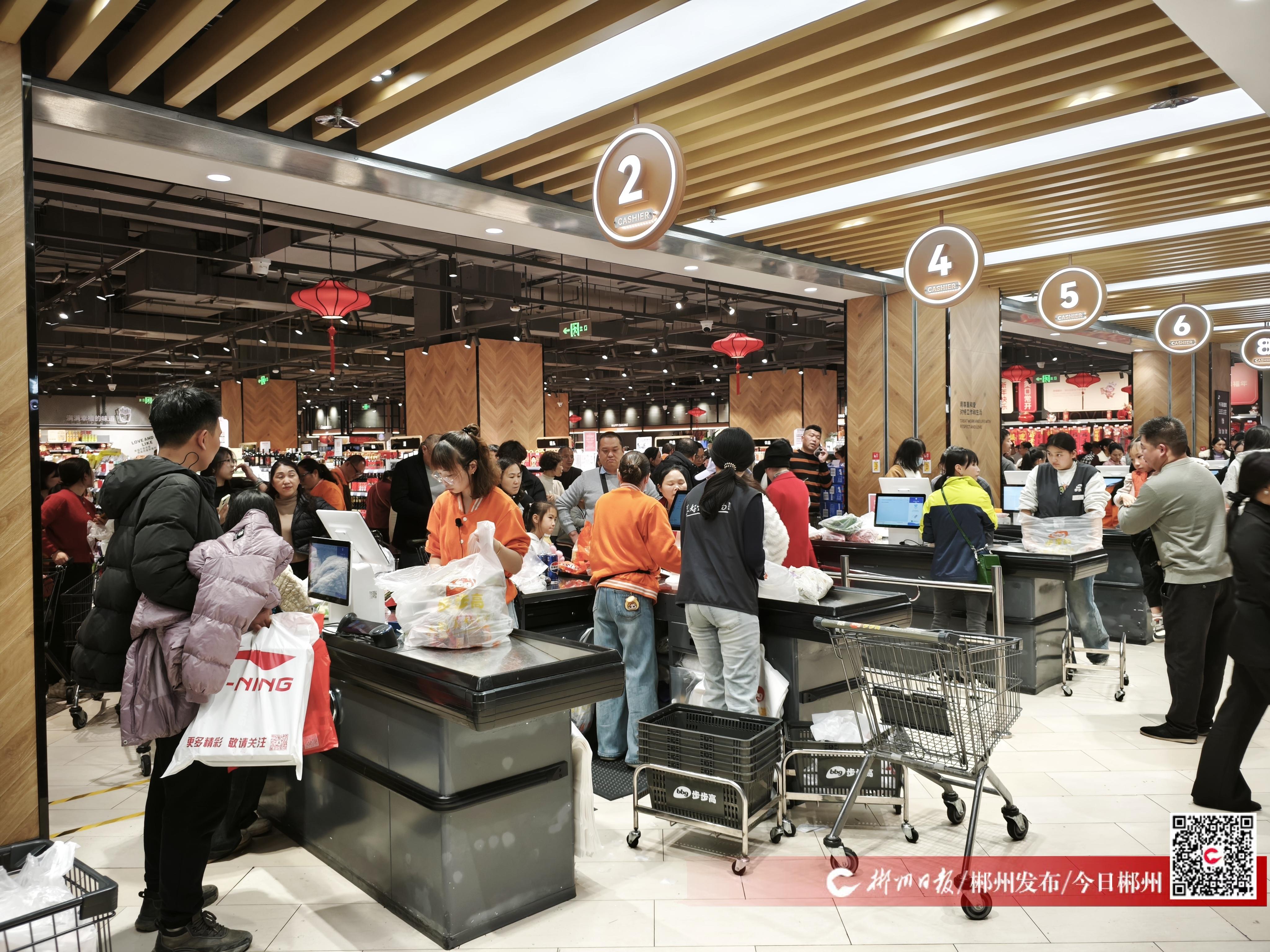 春节临近,郴州市城区各大商业综合体张灯结彩、人潮涌动。超市收银台前排起长龙,购物车里年货满盈;游乐区内孩子们欢声笑语,驱散了冬日寒意。整座城市都沉浸在红火祥和的节日氛围中。