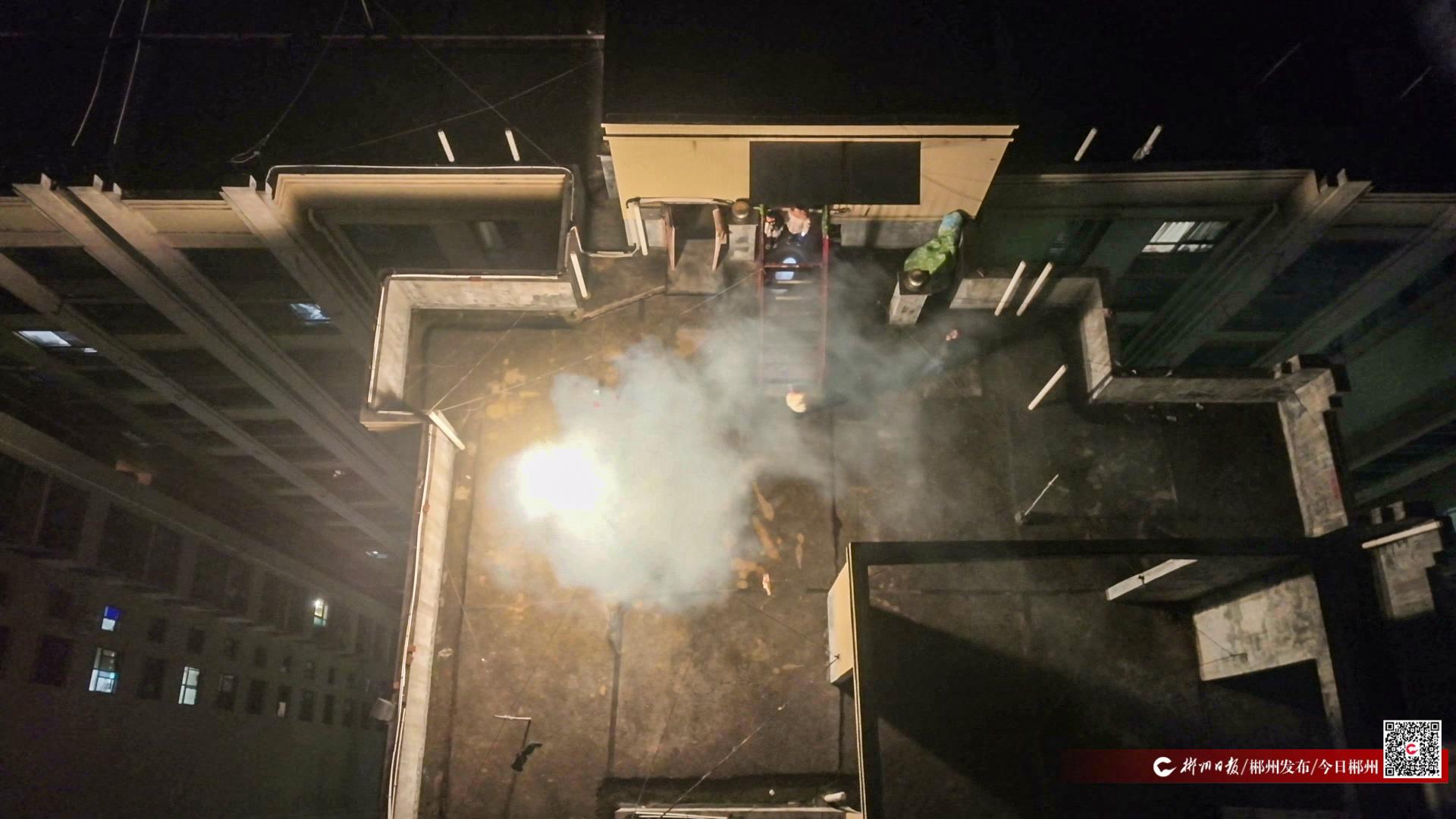 “市民朋友请注意,此处为郴州市中心城区,禁止燃放烟花爆竹,请立即停止燃放行为,自觉遵守相关规定,感谢配合!”指挥中心通过指令启动高音喇叭反复喊话,直至现场人员停止燃放。
